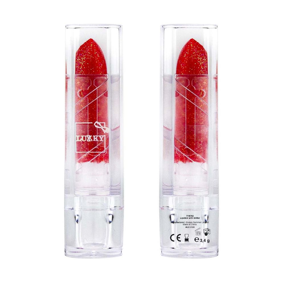 Lukky Cosmetics, είναι η νέα σειρά μακιγιάζ & αξεσουάρ, για παιδιά & εφήβους. Τα παιδικά καλλυντικά Lukky είναι ελεγχέμενα σύμφωνα με την Ευρωπαϊκή νομοθεσία και απόλυτα ασφαλή, χωρίς paraben - κατάλληλα για την παιδική/εφηβική επιδερμίδα. Κραγιόν με γκλίτερ για λάμψη, σε 3 διαφορετικά χρώματα: ροζ, κόκκινο, μωβ, με απαλό άρωμα φράουλας. Καθένα πωλείται ξεχωριστά.