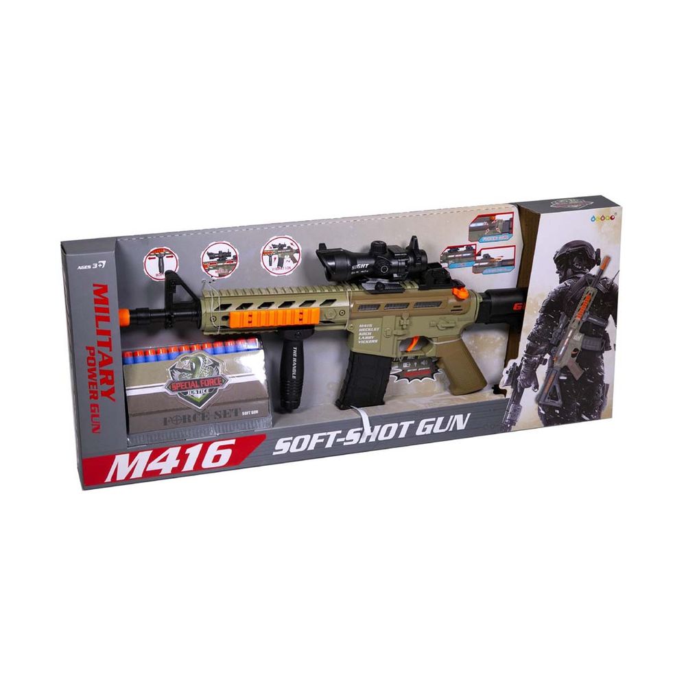 Όπλο πολυβόλο εκτοξευτής με 12 βελάκια. Όπλο μήκους 60 cm. στρατιωτικού τύπου με διόπτρα, δόνηση, κίνηση, φως και ήχο. Είναι παράλληλα και εκτοξευτής με 12 αφρώδη βελάκια για να διπλασιάσεις τη διασκέδασή σου. Απαιτούνται μπαταρίες 3xΑΑ για τη χρήση του (περιλαμβάνονται).