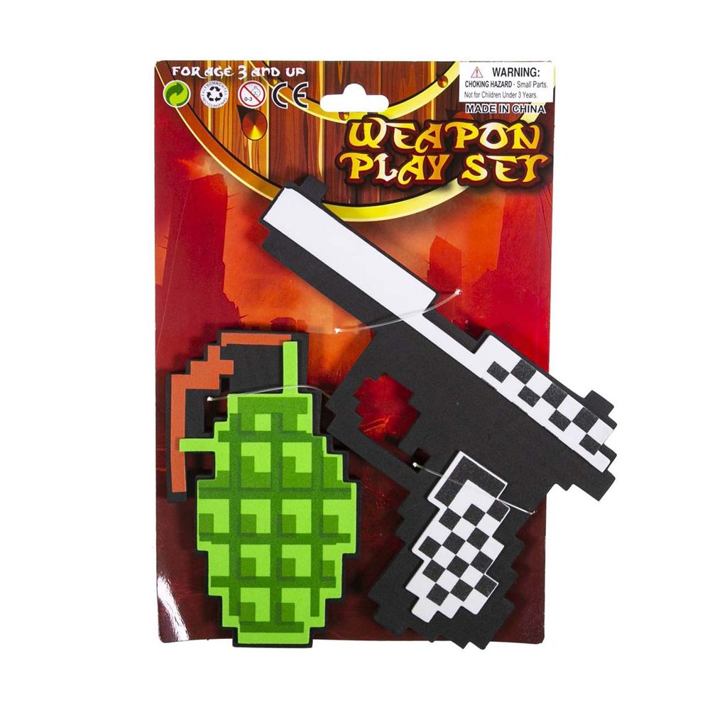 Όπλο και χειροβομβίδα από EVA υλικό. Μήκος όπλου: 19.5cm. Ύψος χειροβομβίδας: 14cm.