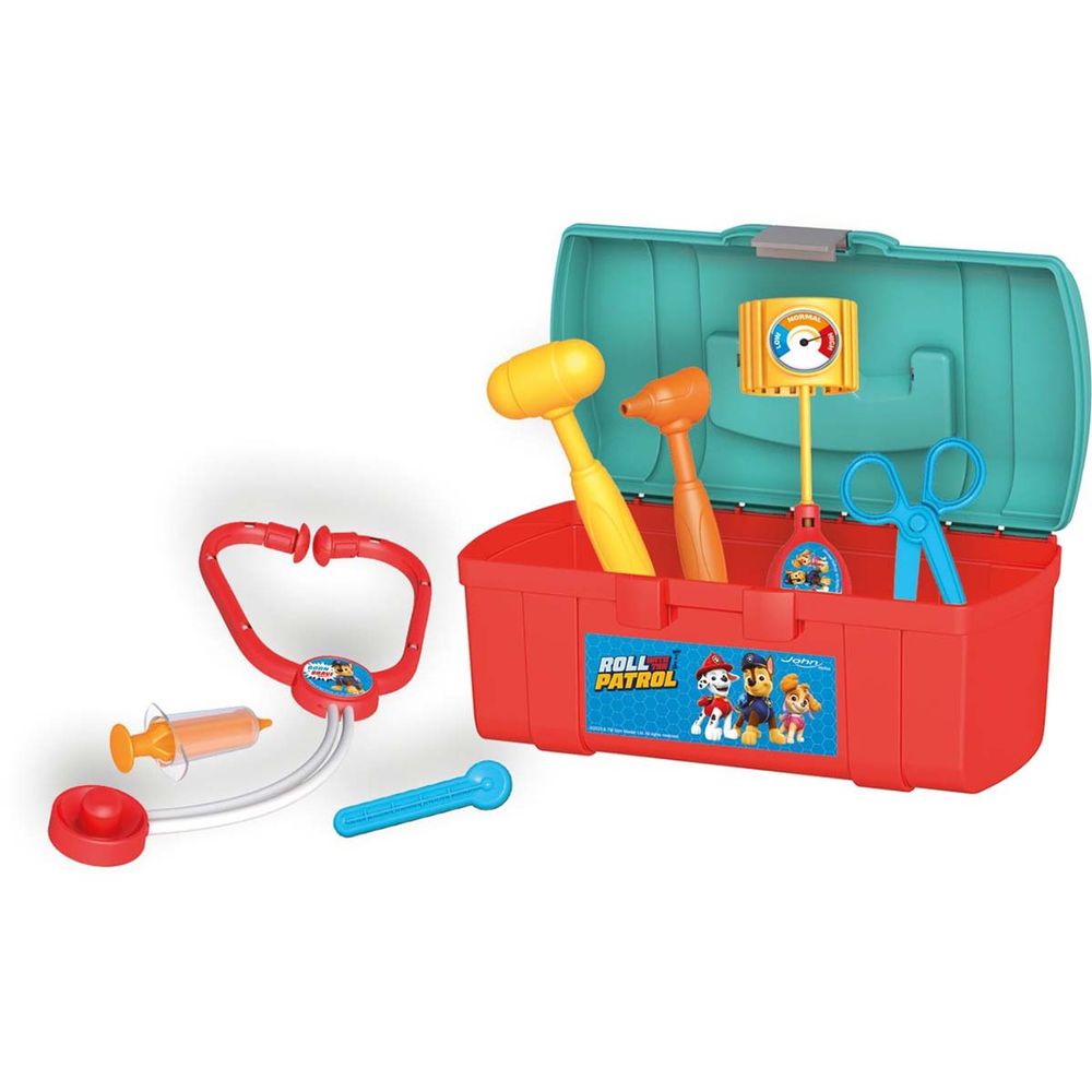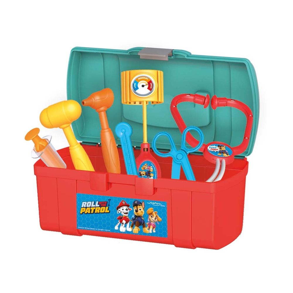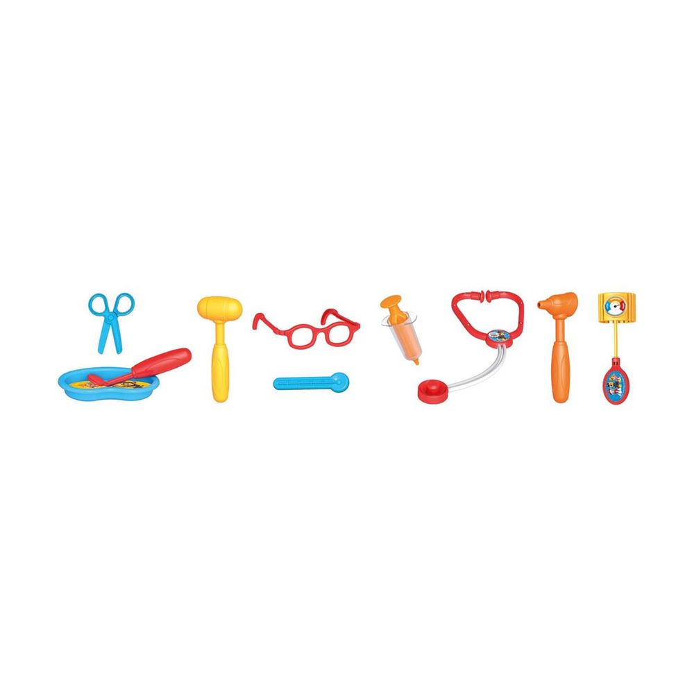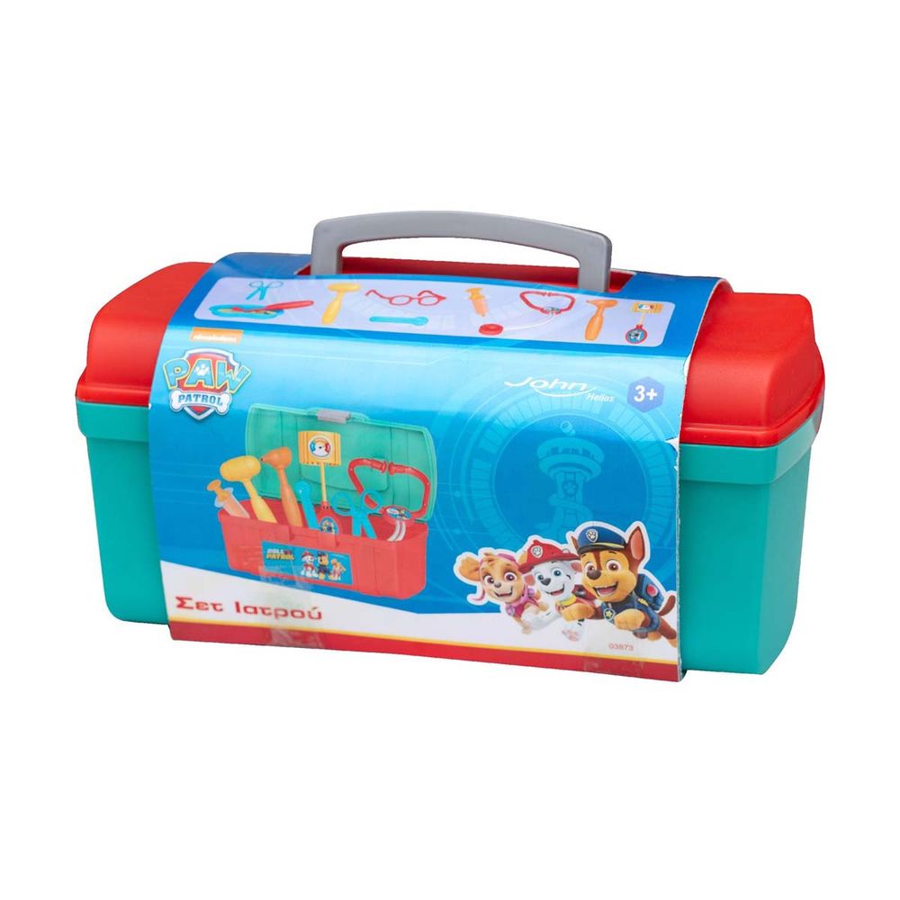 Σετ Ιατρού σε βαλιτσάκι με τα αγαπημένα κουτάβια Paw Patrol! Περιλαμβάνει στηθοσκόπιο, πιεσόμετρο, ωτοσκόπιο, σίριγγα, σφυρί, θερμόμετρο, ψαλίδι, γυαλιά, δίσκο και καθρέπτη.