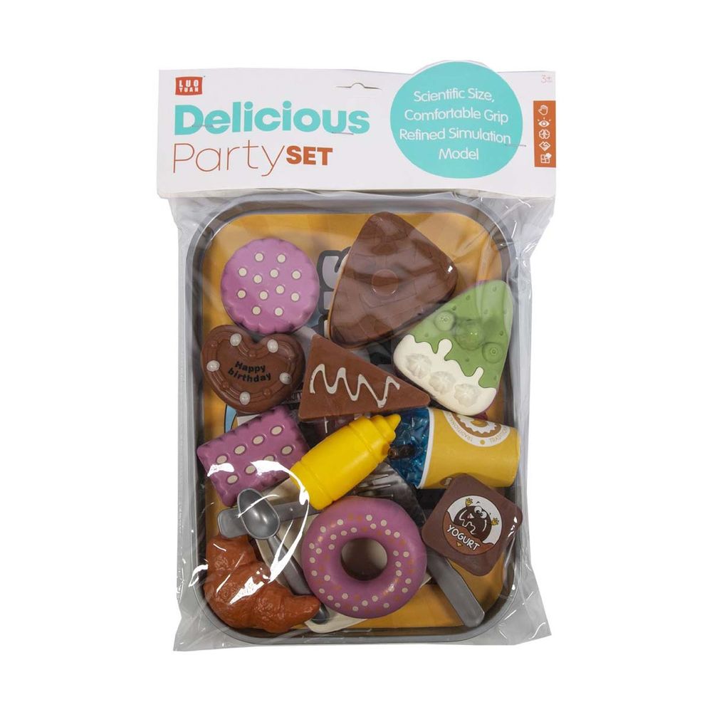 Ώρα για πάρτυ με τα πιο λαχταριστά γλυκά! . Με αυτό το δίσκο με γλυκά θα διοργανώσεις το καλύτερο πάρτυ που έκανες ποτέ. Το σετ περιλαμβάνει διάφορα είδη γλυκών και ροφημάτων καθώς επίσης και κουζινικά είδη χαρίζοντας σου μοναδικές στιγμές παιχνιδιού. Ξεκίνα να ανακαλύπτεις την δημιουργικότητά σου! Το σετ περιλαμβάνει 1 πιρούνι, 1 κουτάλι, 1 μαχαίρι, 1 πιάτο,1 ποτήρι χυμό, 7 κομμάτια γλυκό, 1 κουτί σοκολάτας,1 γιαούρτι, 1 μπουκαλάκι μαγιονέζας,1 δίσκο σερβιρίσματος.\n