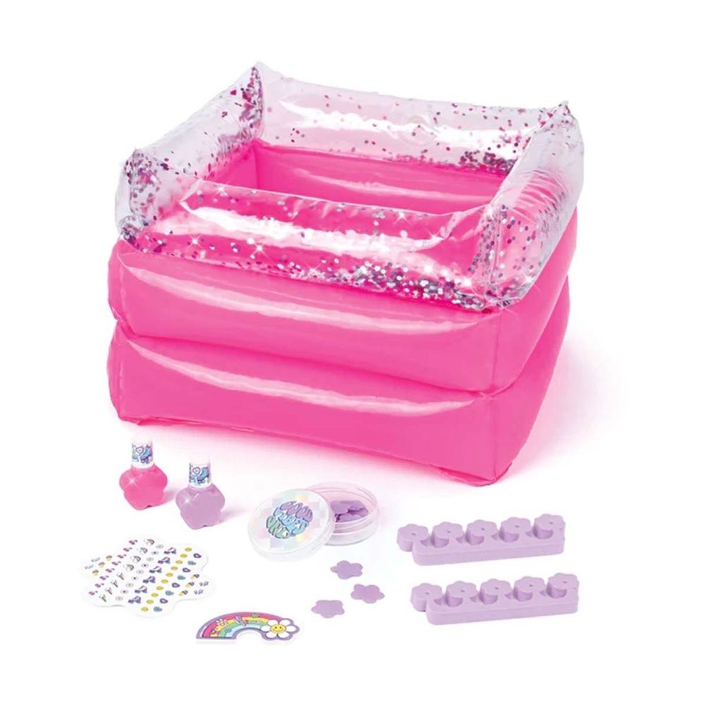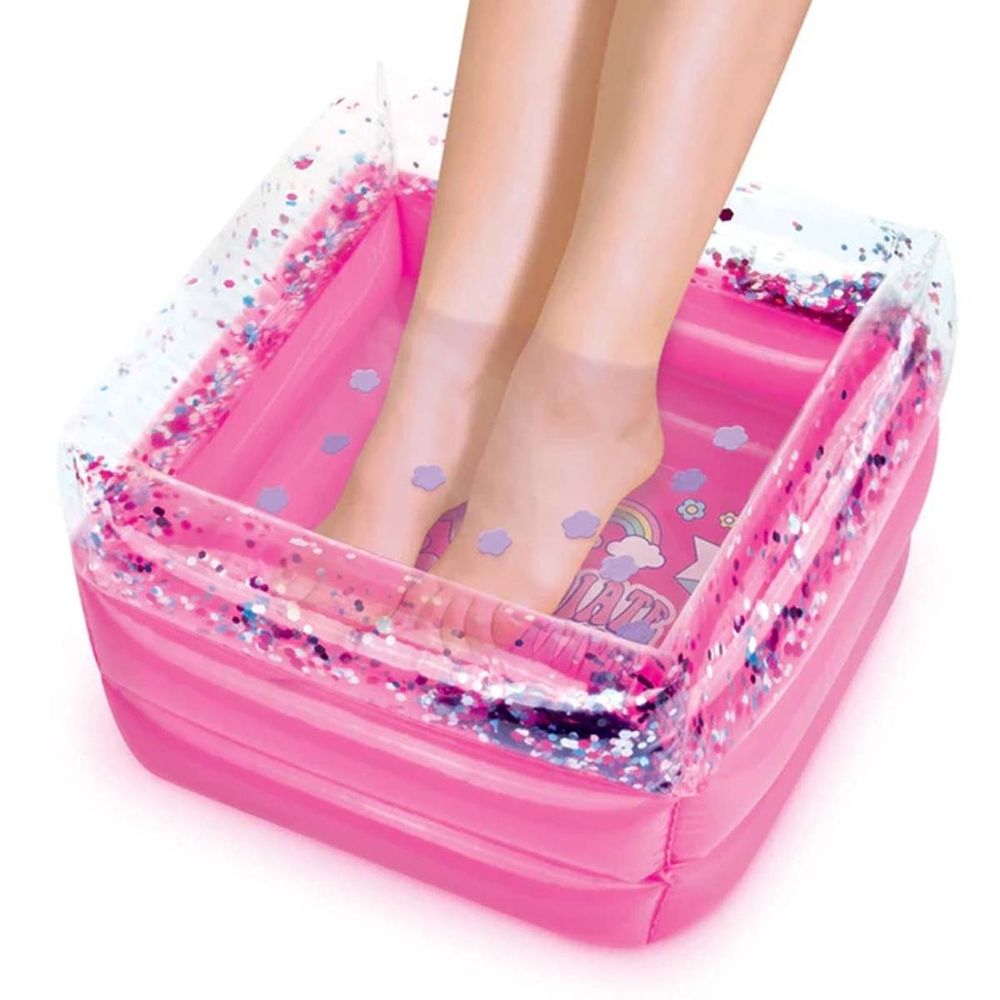 Η αυτοφροντίδα είναι πανεύκολη όταν φαίνεται τόσο καλή! Πρόσθεσεε ζεστό νερό στο αστραφτερό φουσκωτό ποδόλουτρο και απόλαυσε τα δάχτυλα των ποδιών σου με διασκεδαστικά κομφετί μπάνιου πριν κάνεις το τέλειο πεντικιούρ και απόλαυσε τα λαμπερά αποτελέσματα. Διαχωριστικά για τα δάχτυλα των ποδιών, λίμα και βερνίκι νυχιών ολοκληρώνουν την εμφάνιση. Μην παραλείψεις τα άκρα των δαχτύλων. Συνδύασε το με το τέλειο μανικιούρ που ολοκληρώνεται με αυτοκόλλητα νυχιών για να συμπληρώσεις το πεντικιούρ.