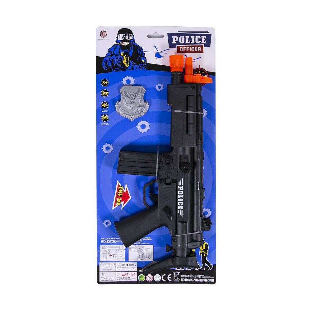 Όπλο πολυβόλο μαύρο αστυνομίας, μήκους 35cm με ρεαλιστικό ήχο πολυβόλου, μουσική και σήμα ειδικών δυνάμεων. Παιχνίδι ρόλου μίμισης για πολλές ώρες διασκέδασης. Απαιτούνται 2xΑΑ μπαταρίες για τη χρήση του (δεν περιλαμβάνονται).