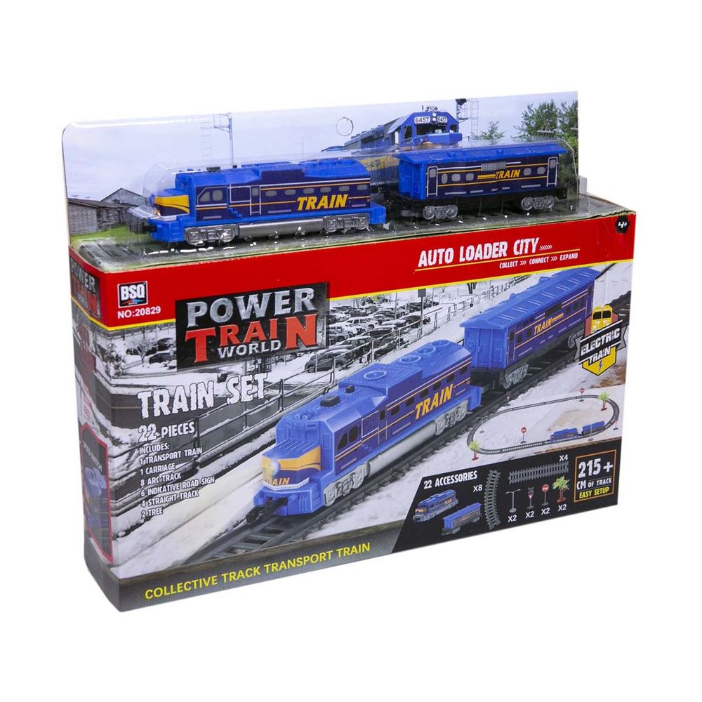 Σιδηρόδρομος μπαταρίας Power Train συνολικού μήκους 215 cm. με ήχο και φωτισμό. Η συσκευασία περιλαμβάνει 12 ράγες (8 καμπύλες και 4 ευθείες), αξεσουάρ σιδηρόδρομου και λευκό βαγόνι με ρυθμιστή ταχύτητας. Συνολικά περιλαμβάνονται 22 αξεσουάρ. Απαιτούνται 2ΑΑΑ μπαταρίες για τη χρήση του (δεν περιλαμβάνονται). Μπορείς να προσθέσεις επιπλέον βαγόνια στο συρμό σου (πωλούνται ξεχωριστά).