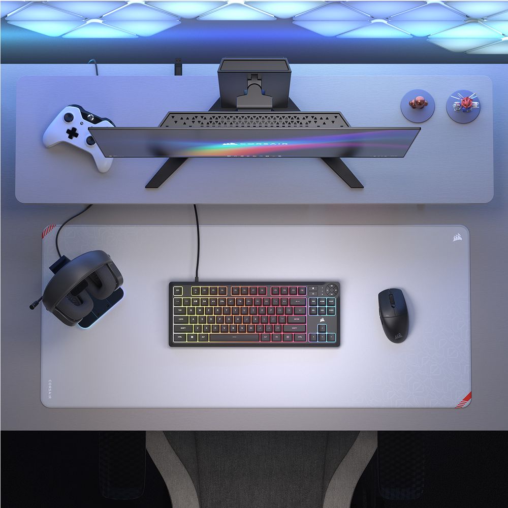 Απόλαυσε το CORSAIR K55 CORE TKL: ένα κομψό, ανθεκτικό και συμπαγές πληκτρολόγιο χωρίς αριθμητικό για περισσότερο χώρο στις κινήσεις του ποντικιού. Γράψε άνετα με τα άμεσα και αθόρυβα πλήκτρα μεμβράνης και έλεγξε μουσική και φωτισμό με ένα πάτημα. Δημιούργησε το δικό σου RGB show με 8 ζώνες ή iCUE και μην ανησυχείς για ατυχήματα—η αντοχή του σε υγρά έως 300 ml το κρατά ασφαλές ακόμα και στις πιο έντονες στιγμές. Φτιαγμένο για gaming, φτιαγμένο για σένα.