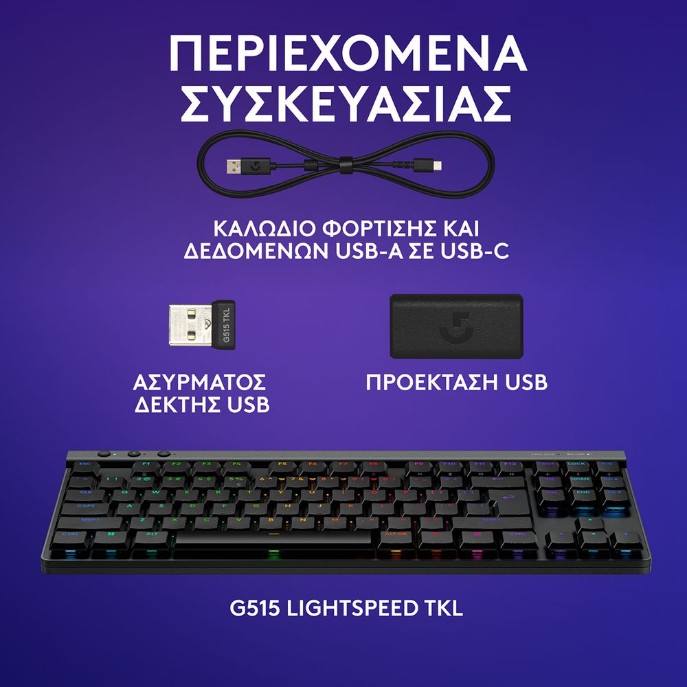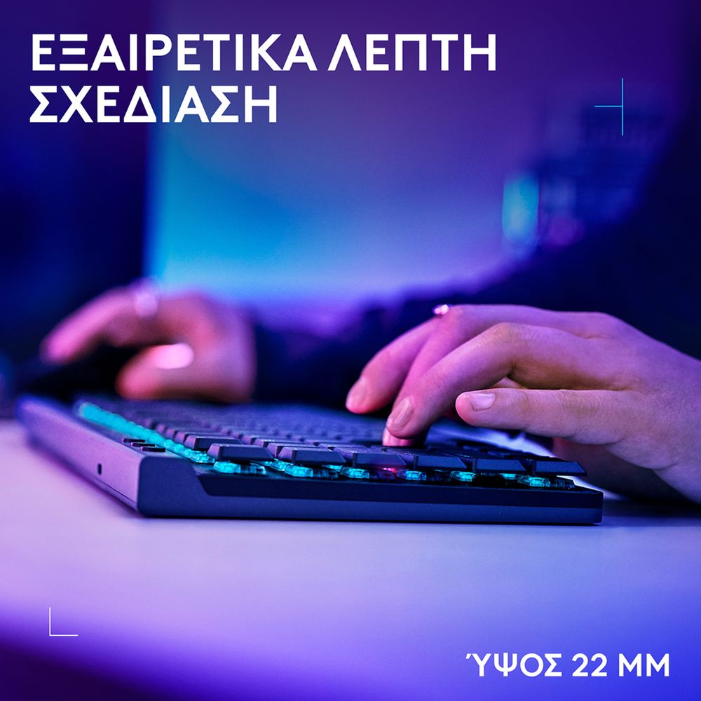 Ζήσε την απόλυτη εμπειρία gaming με το Logitech G G515 LIGHTSPEED TKL. Απόλαυσε τον εξαιρετικά λεπτό σχεδιασμό 22 mm και τη μηχανική υψηλής απόδοσης. Προσαρμόσε τον τρόπο παιχνιδιού σου με συνδεσιμότητα τριών τρόπων και το KEYCONTROL. Νιώσε την ακρίβεια των GL χαμηλού προφίλ διακοπτών και των PBT double-shot πλήκτρων, με κατασκευή που μειώνει τον ήχο για ανθεκτικότητα, άνεση και κορυφαία απόκριση σε κάθε κίνηση.