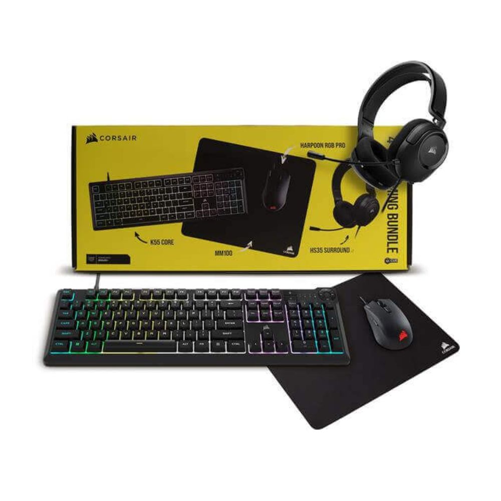 Ξεκίνα τη νίκη με το Corsair 4-in-1 Gaming Bundle! Απόλαυσε πλήρες RGB πληκτρολόγιο K55 CORE, ελαφρύ και γρήγορο mouse HARPOON RGB PRO, άνετα ακουστικά HS35 Surround v2 με Dolby 7.1 και ακριβές υφασμάτινο mouse pad MM100. Έχεις όλα όσα χρειάζεσαι για απόλυτο έλεγχο, ταχύτητα και κορυφαία εμπειρία gaming.