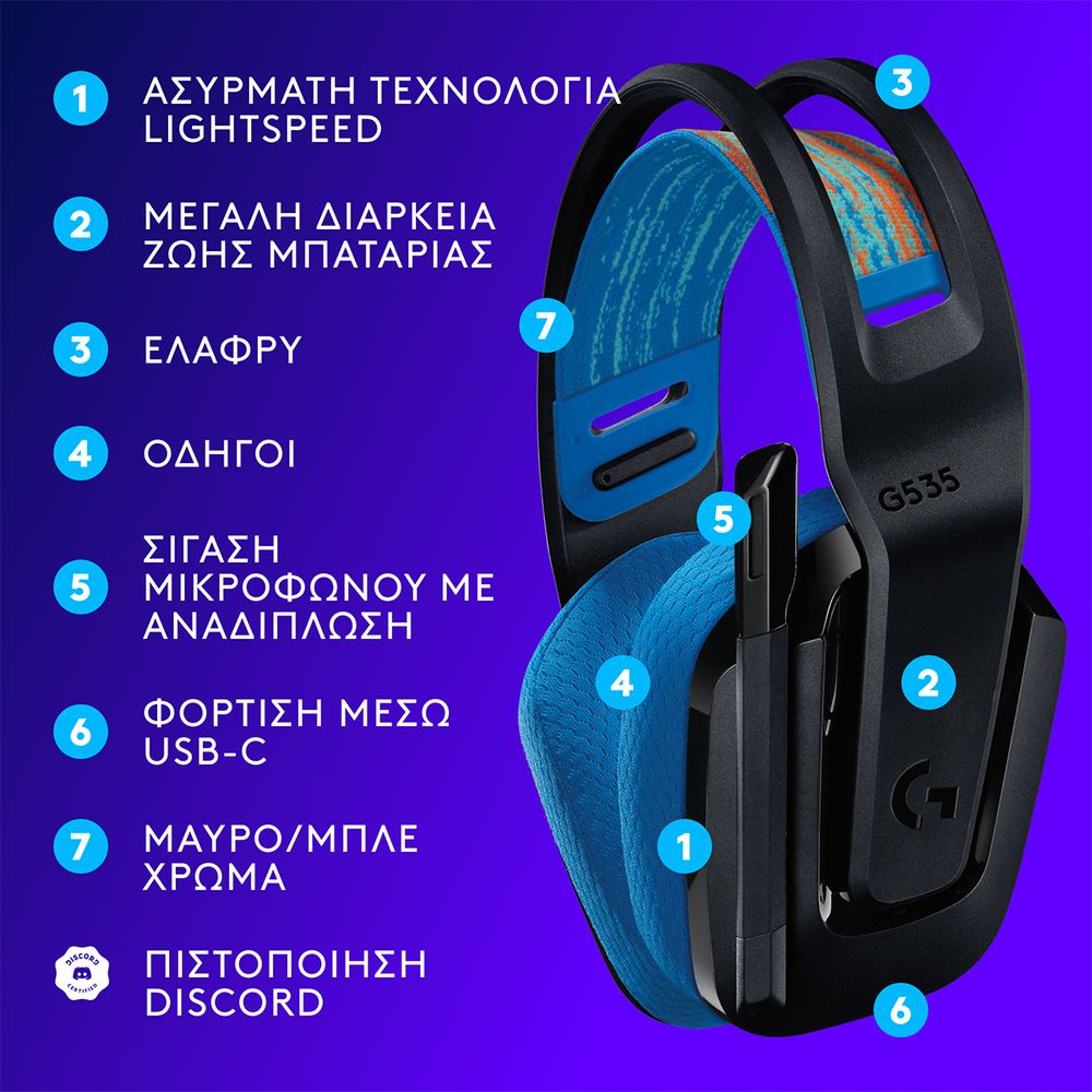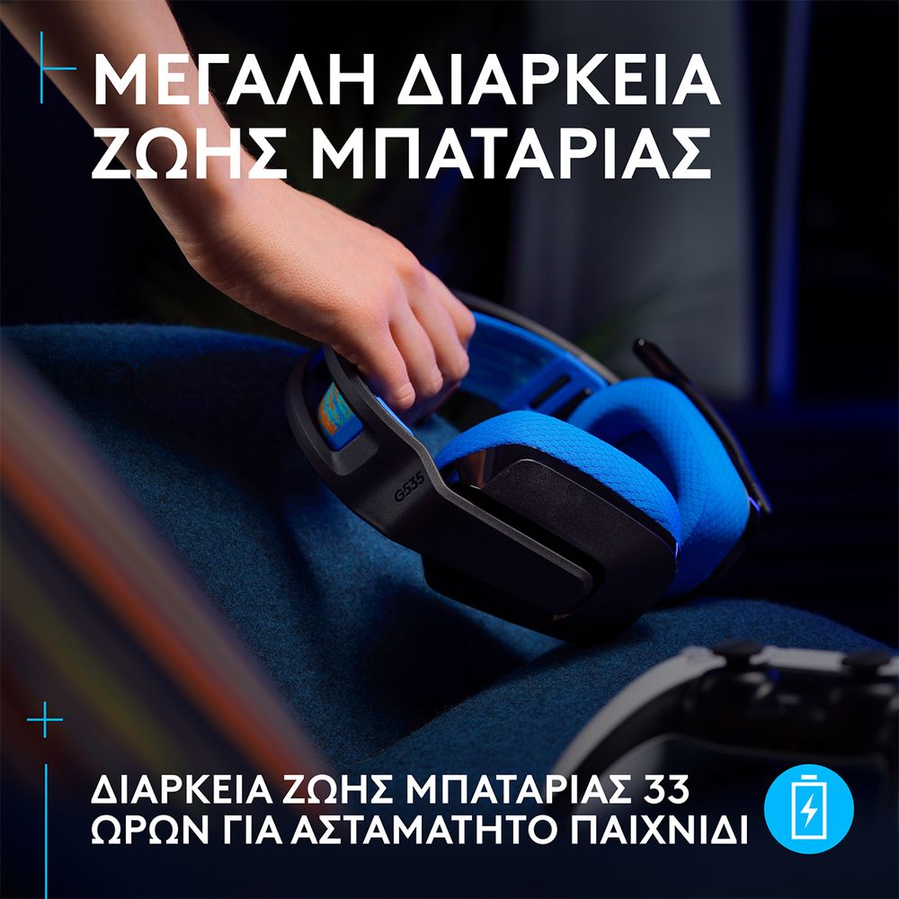 Τα Logitech G G535 LIGHTSPEED είναι πάντα έτοιμα για χρήση. Η τεχνολογία LIGHTSPEED προσφέρει ασύρματο gaming υψηλής απόδοσης με καθαρό, καθηλωτικό ήχο. Το εύχρηστο μικρόφωνο και ο έλεγχος έντασης ήχου με περιστροφή προς σίγαση καθιστούν αυτά τα ακουστικά απλά στην τοποθέτηση και άμεσα στη λειτουργία. Με διάρκεια ζωής μπαταρίας 33 ωρών και ελαφριά κατασκευή, τα Logitech G G535 LIGHTSPEED είναι έτοιμα για ώρες αδιάλειπτου παιχνιδιού στο PS5 και σε PC/Mac.