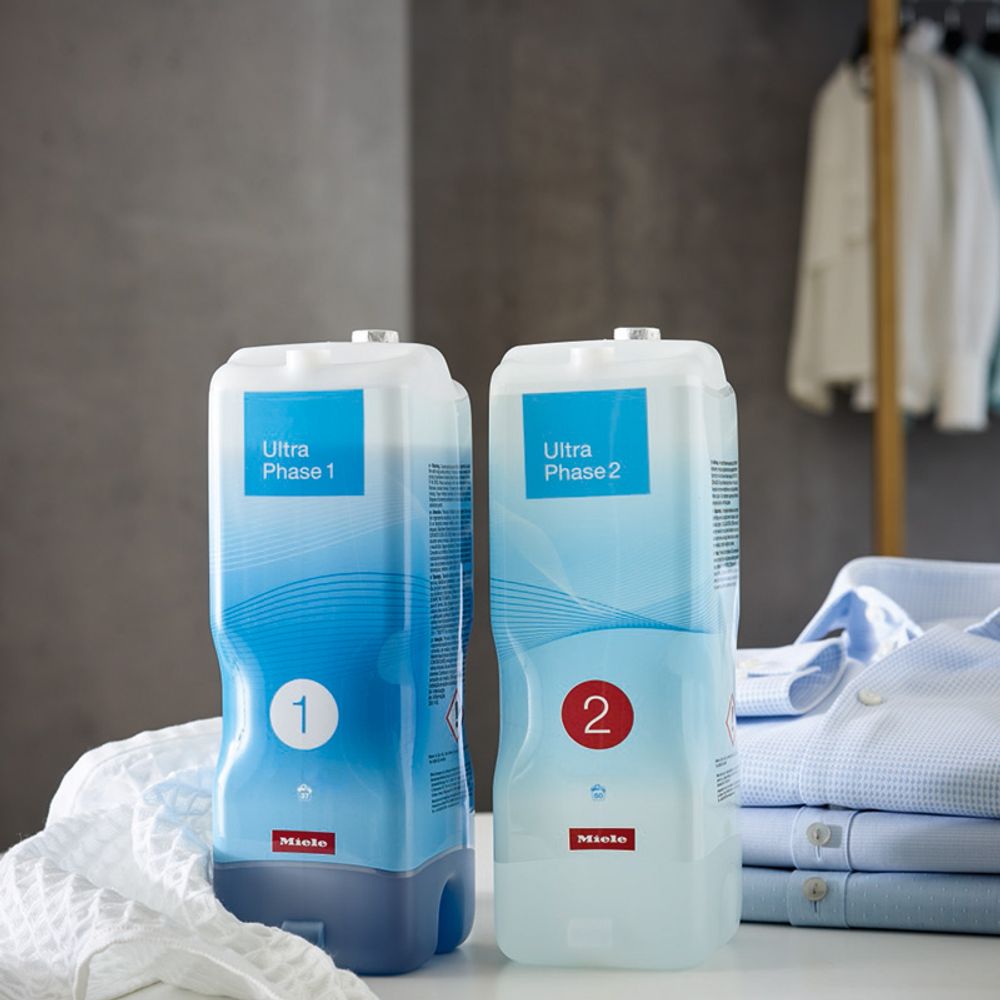 Απορρυπαντικό Miele Ultra Phase 2 κατάλληλο για τη σειρά πλυντηρίων W1 με αυτόματη δοσολογία, με ενισχυτικό λευκαντικό για λευκά ρούχα.