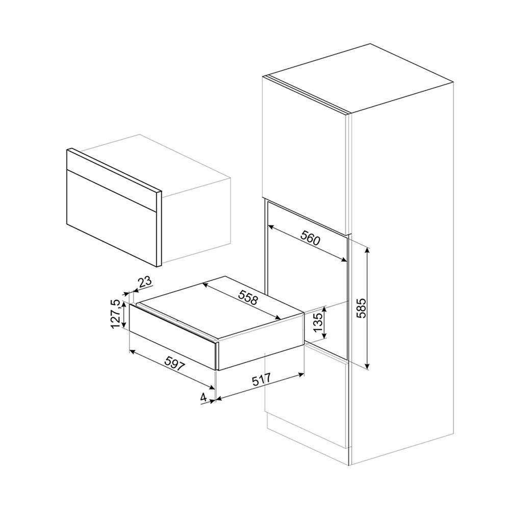 Διαστάσεις: (Π)597 x (Β)538 x (Υ)135 mm, Μηχανισμός ανοίγματος: Push-pull, Μέγιστο επιτρεπόμενο βάρος φόρτωσης: 15 kg, Μέγιστο βάρος επάνω στη συσκευή στον εντοιχισμό: 85 kg, Παρεχόμενα αξεσουάρ: Slavonia durmast ξύλινο ράφι, Αντλία κρασιού, 2 φελλοί, Φελλός για αφρώδεις οίνους, Φελλός για το κρασί, Φελλός κατά του σταξίματος, Φελλός από συμπαγή χάλυβα για αφρώδεις οίνους, Τσιμπίδα σαμπάνιας/αφρώδους οίνου, Sommelier με τιρμπουσόν, Φελλός ερυθρών οίνων, Θερμόμετρο κρασιού με θήκη, Χωνί κρασιού με ξύλινη λαβή