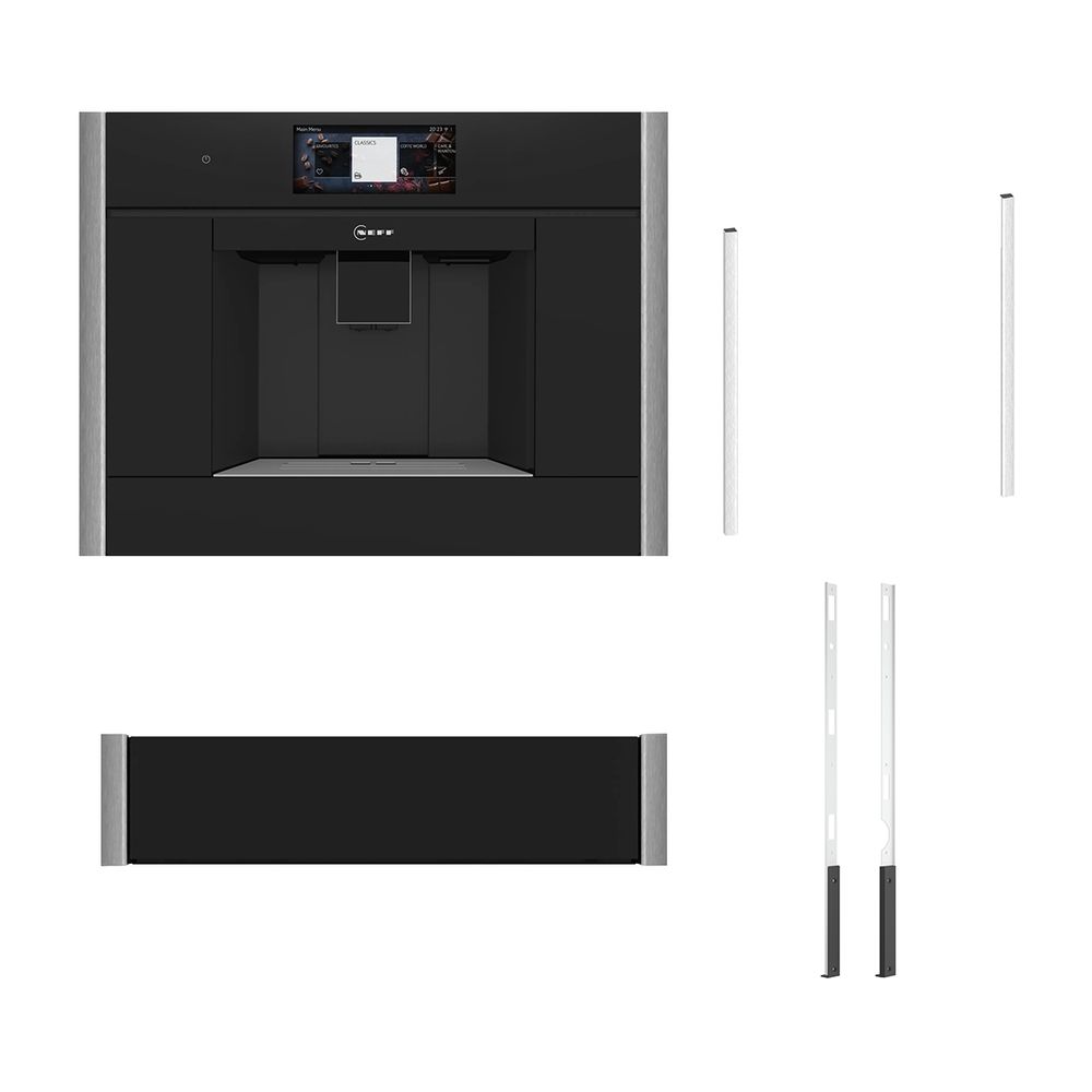 Σετ το οποίο αποτελείται από την εντοιχιζόμενη καφετιέρα N 90 CL9TX11Y0, το ZC060TY0 εξάρτημα για Εντοιχιζόμενες Καφετιέρες, το N29HA11Y2 για Seamless εγκατάσταση θερμαινόμενο συρτάρι και το ZC060MY0 60cm Metallic Silver Flex Design Kit.