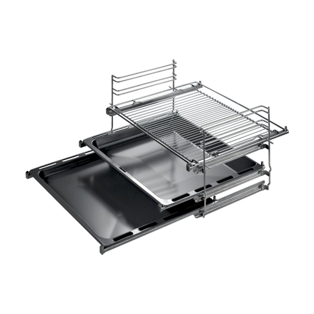 Χάρη στον πλήρως επεκτεινόμενο, τριπλό τηλεσκοπικό μηχανισμό στα τρία τελευταία επίπεδα του φούρνου, μπορείτε να τραβήξετε μέχρι έξω τις παρασκευές σας από το φούρνο, χωρίς να υπάρχει κίνδυνος αυτές να πέσουν.