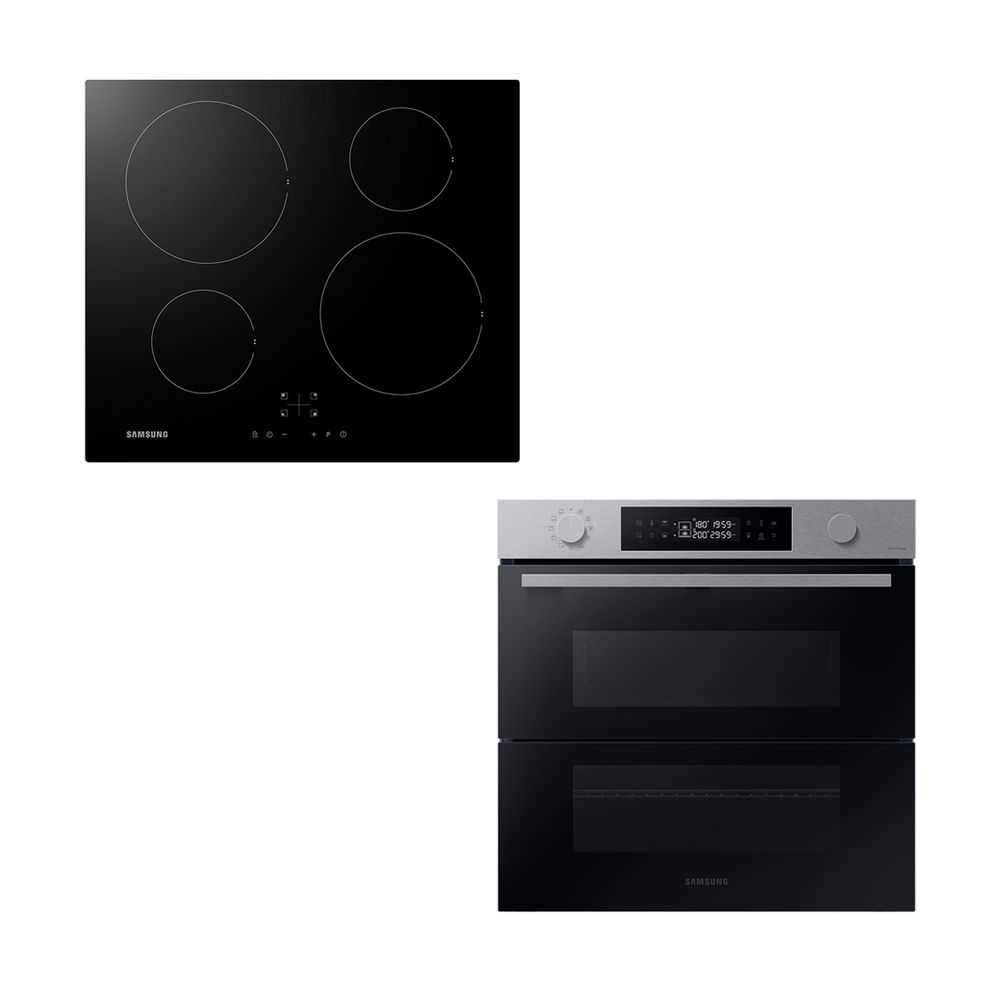 Set εντοιχισμού Samsung που αποτελείται από τον εντοιχιζόμενο φούρνο NV7B4545VAS/U3 χωρητικότητας 76 λίτρων και ενεργειακής κλάσης Α+ και από τις επαγωγικές εστίες NZ64F3NM1AB UR με 4 ζώνες μαγειρέματος.