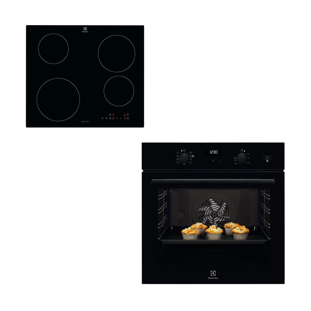 Σετ εντοιχισμού το οποίο αποτελείται από τον εντοιχιζόμενο φούρνο Electrolux EOD5C50Z Black και τις επαγωγικές εστίες Electrolux LIB60424CK.