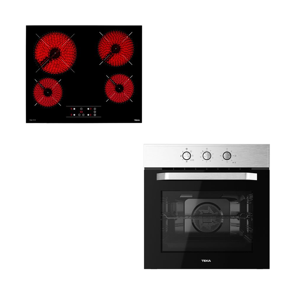 Σετ εντοιχισμού το οποίο αποτελείται από τον εντοιχιζόμενο φούρνο Teka HCB 6525 Inox και τις κεραμικές εστία Teka TBC 64010 TTC.