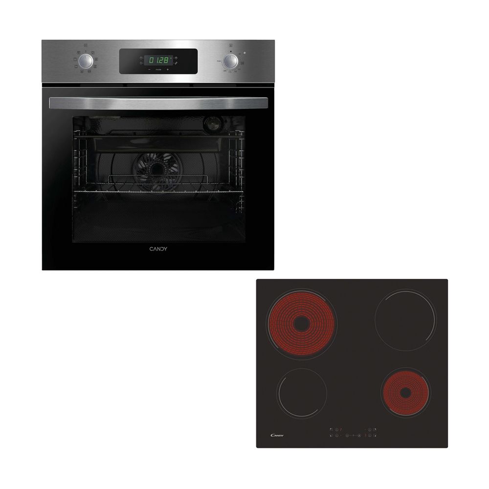 Set εντοιχισμού το οποίο αποτελείται από τον εντοιχιζόμενο φούρνο Candy FIDCP X625 L και τις κεραμικές εστίες Candy CH64CCB/4U2.