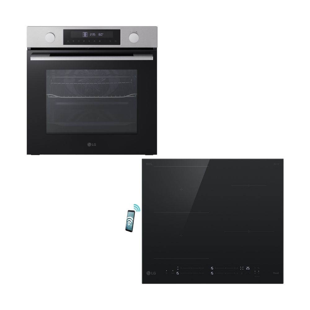 Σετ εντοιχισμού LG το οποίο αποτελείται από τον φούρνο WS5D7210S Inox και από την επαγωγική εστία CBIZ2435B.