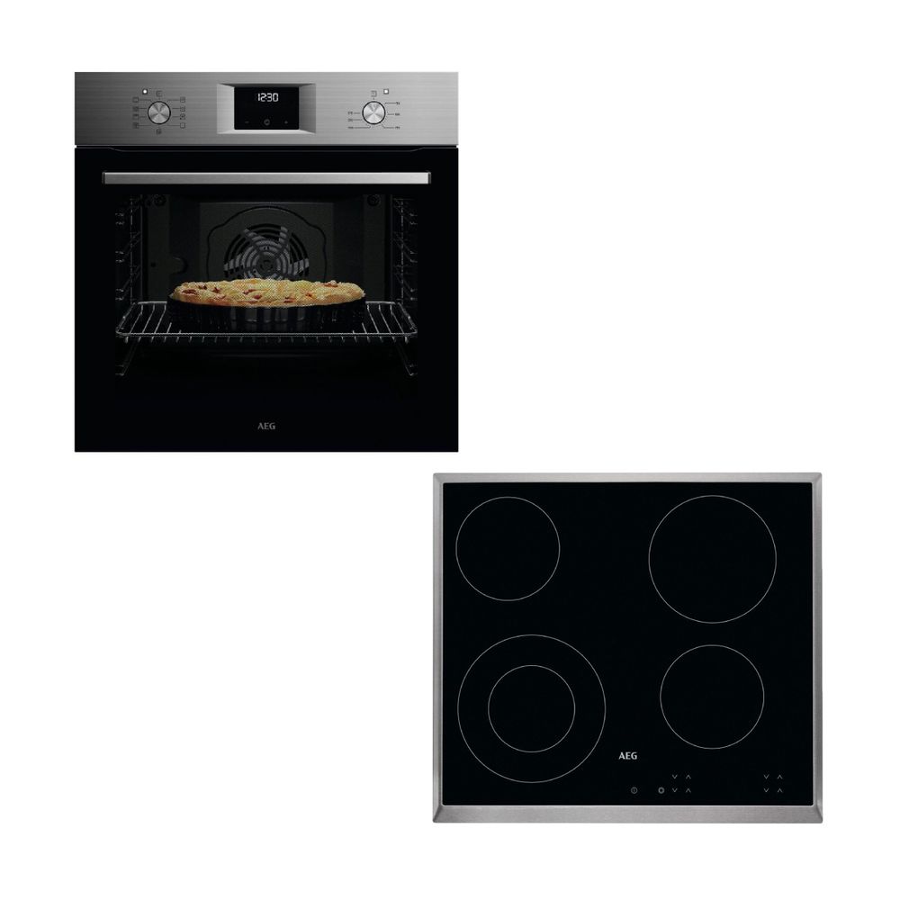 Σετ εντοιχισμού AEG το οποίο αποτελείται από τον φούρνο OA5AB21SM Inox και από την κεραμική εστία HK624010XB.
