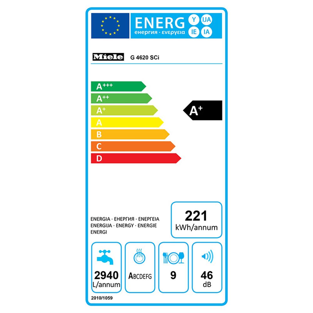 Πλυντήριο πιάτων Miele G4620SCI BW χωρητικότητας 9 σερβίτσιων, ενεργειακής κλάσης Α+, με κατανάλωση νερού στο αυτόματο πρόγραμμα από 6.5 λίτρα για μέγιστη οικονομία.