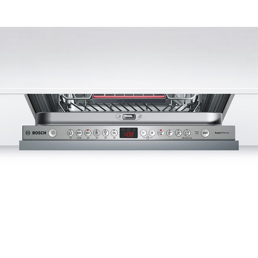 Εντοιχιζόμενο πλυντήριο πιάτων 45cm Bosch SPV46MX02E με χωρητικότητα 10 σερβίτσια, με ειδική λειτουργία HygienePlus για μέγιστη υγιεινή και εξαιρετικά αθόρυβο χάρη στο Αθόρυβο πρόγραμμα.