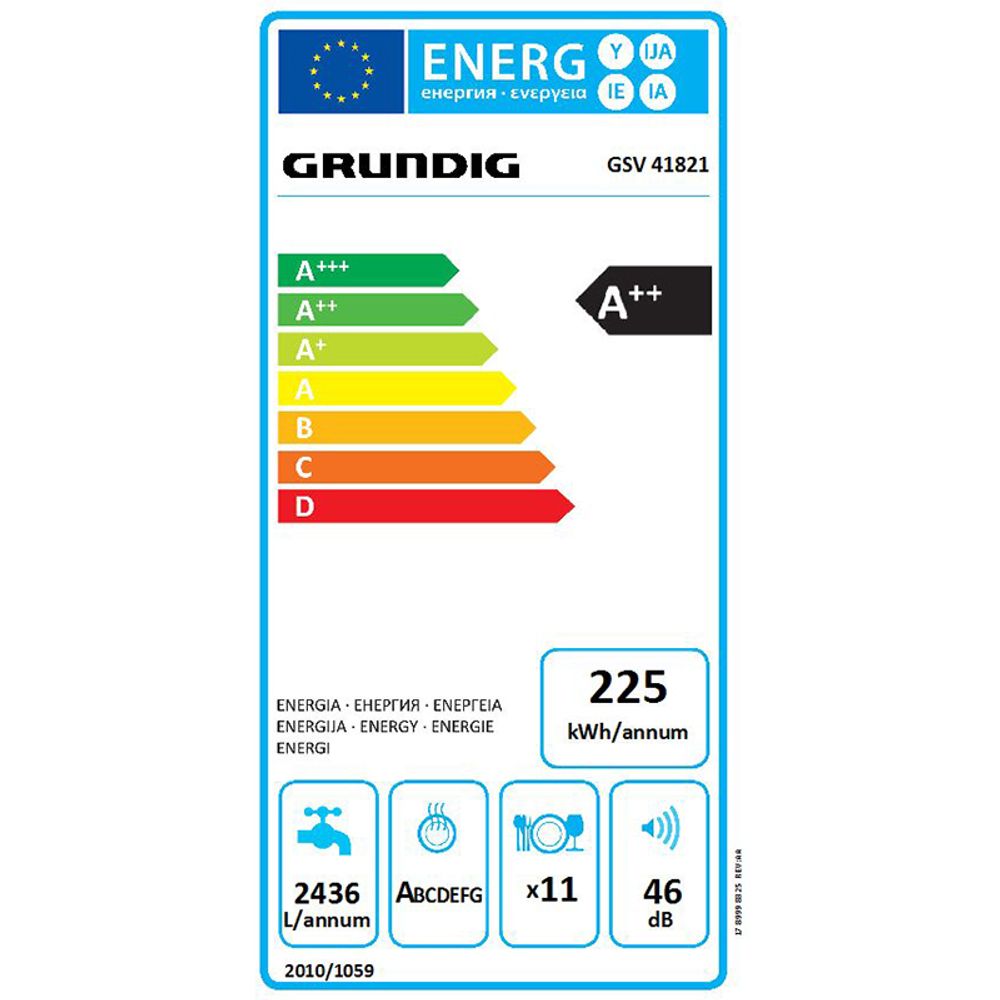 Εντοιχιζόμενο πλυντήριο πιάτων Grundig GSV 41821 χωρητικότητας 11 σερβίτσιων, ενεργειακής κλάσης Α++, με πρόγραμμα All-in-Wash για αποτελεσματικό πλύσιμο υπό υψηλή πίεση και κρυφό πίνακα ελέγχου.