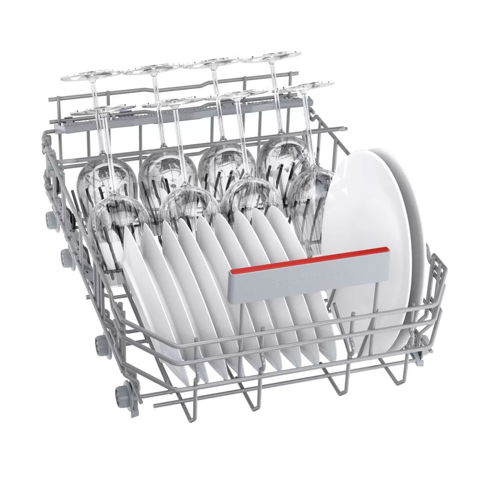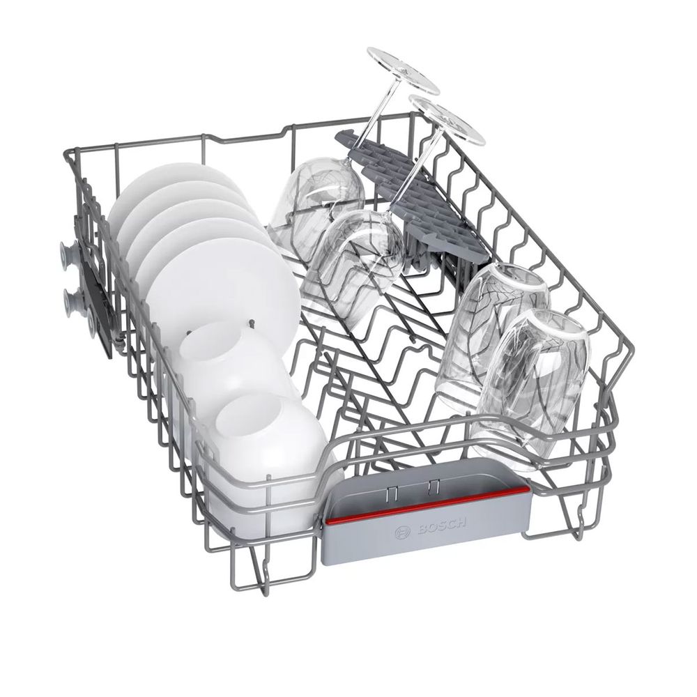 Πλυντήριο πιάτων πλήρους εντοιχισμού45 cm SRV4HMX61E από τη Bosch με μοναδική ευελιξία στην τοποθέτηση των σκευών και επιλογή ExtraDry για ακόμα πιο εντατικό στέγνωμα, με το πάτημα ενός μόνο κουμπιού.