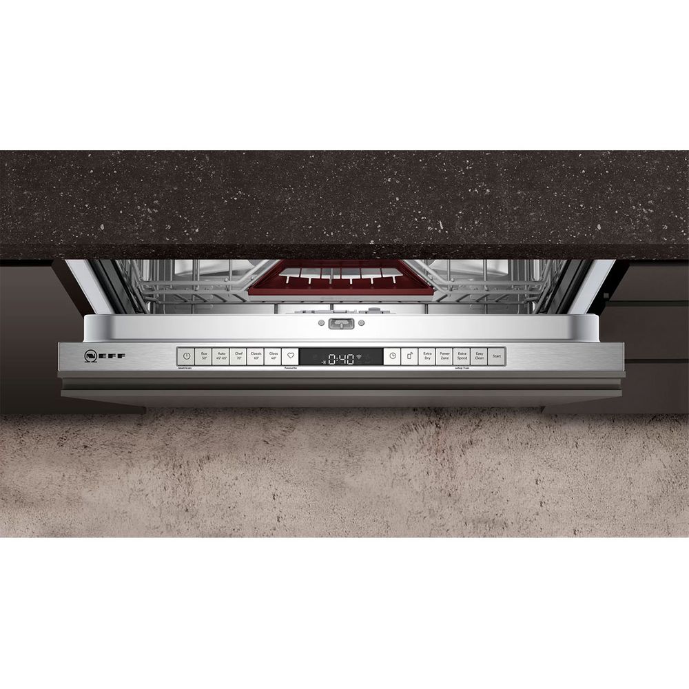Πλυντήριο πιάτων πλήρους εντοιχισμού Neff S197TCX00E με εξαιρετικό στέγνωμα Zeolith , φωτιζόμενο διάκενο και καλάθια Flex 2, Rack Matic τριών επιπέδων και συρτάρι Flex Cutlery για εύκολη φόρτωση του πλυντηρίου σου.