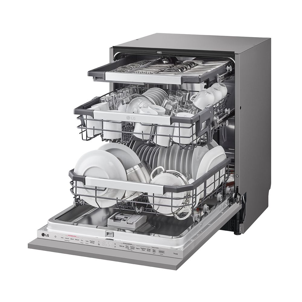 Πλυντήριο πιάτων LG με ατμό και QuadWash για αποτελεσματική πλύση και λιγότερες κηλίδες νερού. Διαθέτει τεχνολογία EasyRack Plus που φροντίζει την ιδανική τοποθέτηση των σερβίτσιων και ο κινητήρας Inverter Direct Drive προσφέρει μεγάλη αποδοτικότητα. Έλεγξε το απομακρυσμένα, μέσω της εφαρμογής SmartThinQ.