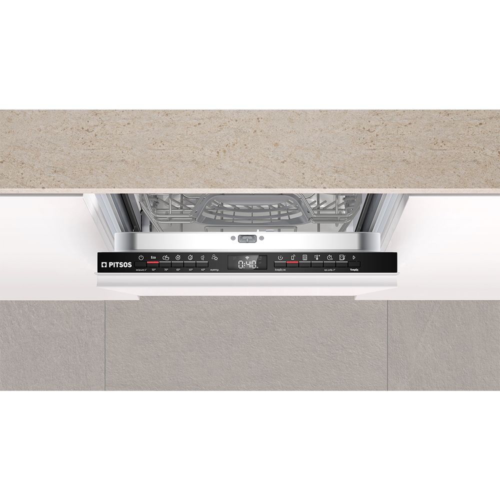 Πλυντήριο πιάτων πλήρους εντοιχισμού Pitsos, 45 cm με 6 προγράμματα και οικονομικό 50 βαθμών. Συγχρόνως, έχει χωρητικότητα 10 σερβίτσια, πτυσσόμενο άνω καλάθι και διπλούς βραχίονες ψεκασμού. Επιπλέον, μπορείς να αποθηκεύσεις το αγαπημένο σου πρόγραμμα ή αυτό που σε βολεύει περισσότερο, για ευκολία.