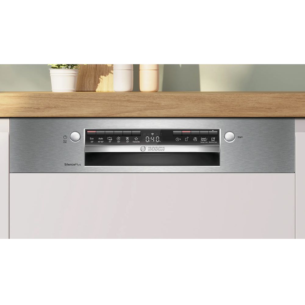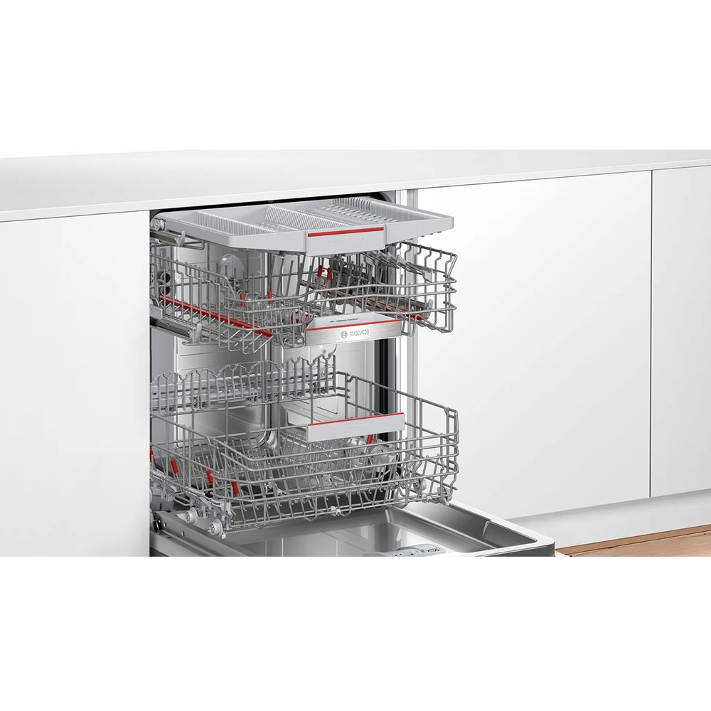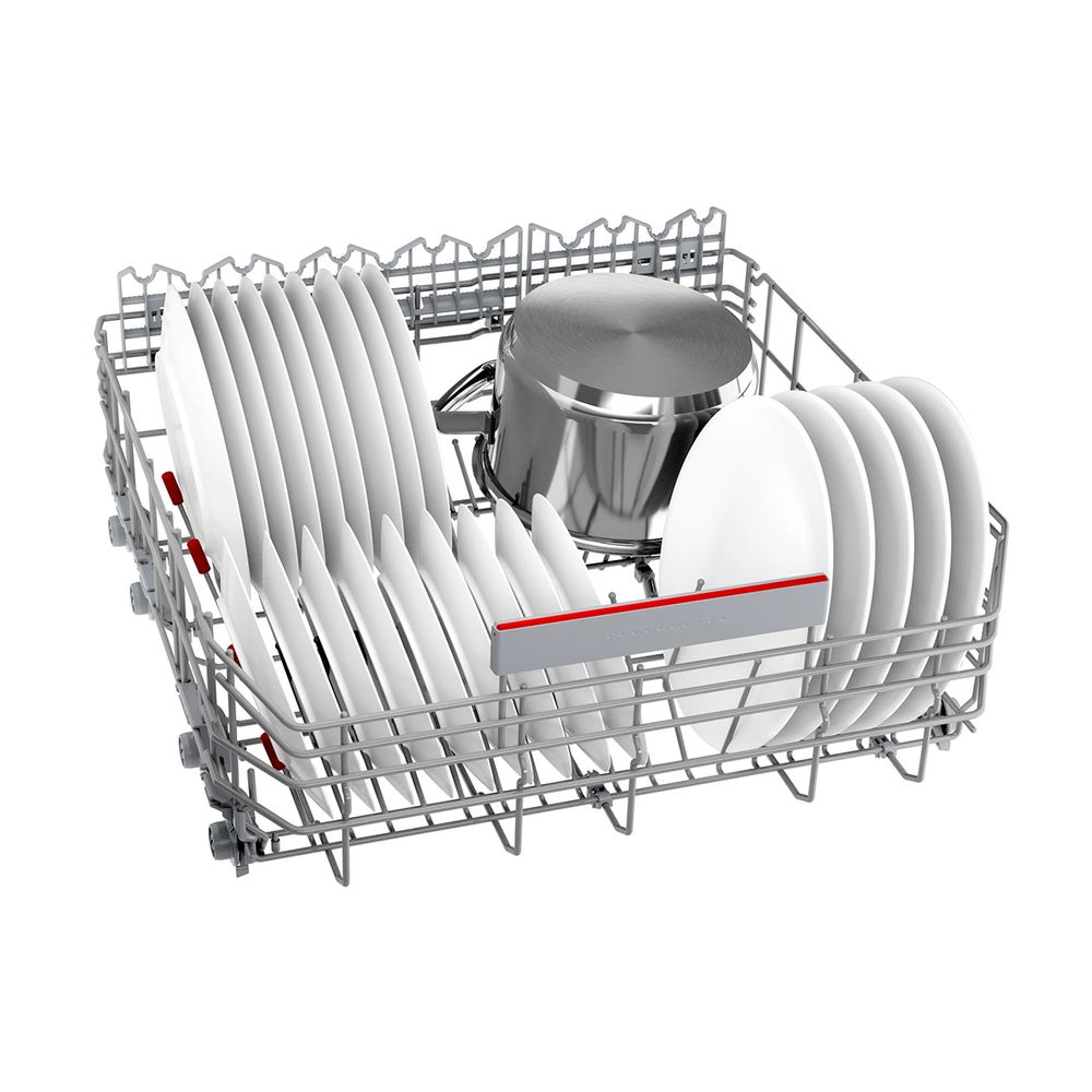 Εντοιχιζόμενο πλυντήριο πιάτων SMI4ECS08E της εταιρείας Bosch, με χωρητικότητα για 14 σερβίτσια, 6 προγράμματα πλύσης, καλάθια Max Flex για μέγιστη ευελιξία, τηλεσκοπικό συρτάρι VarioDrawer, ζώνη Extra Clean καθώς και Home Connect για απομακρυσμένο έλεγχο του πλυντηρίου σου.