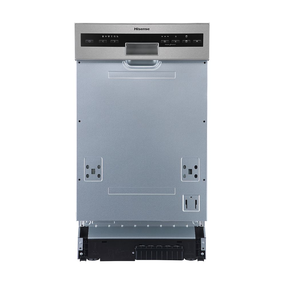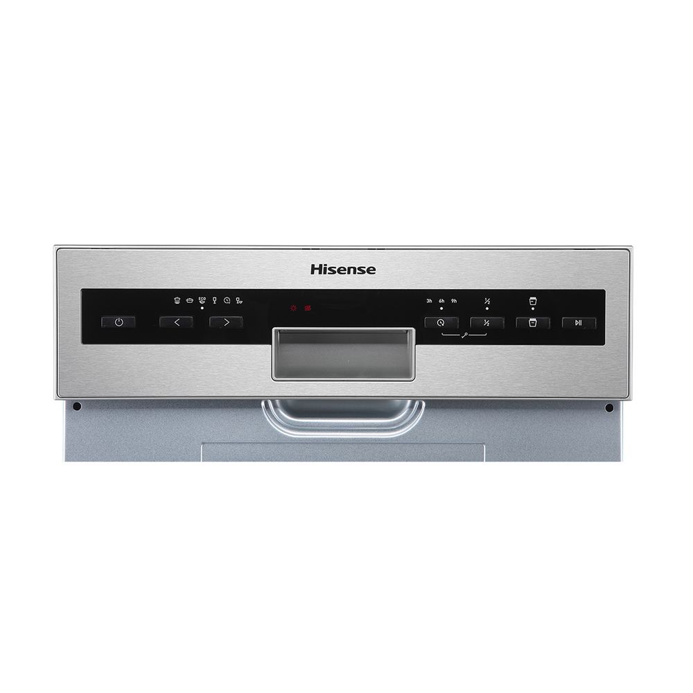 Εντοιχιζόμενο πλυντήριο πιάτων Hisense, με χωρητικότητα 10 σερβίτσια, 6 προγράμματα και δυνατότητα μισής πλύσης, τεχνολογία Auto Dry, χειρισμό με πλήκτρα και προστασία κατά της πλημμύρας.