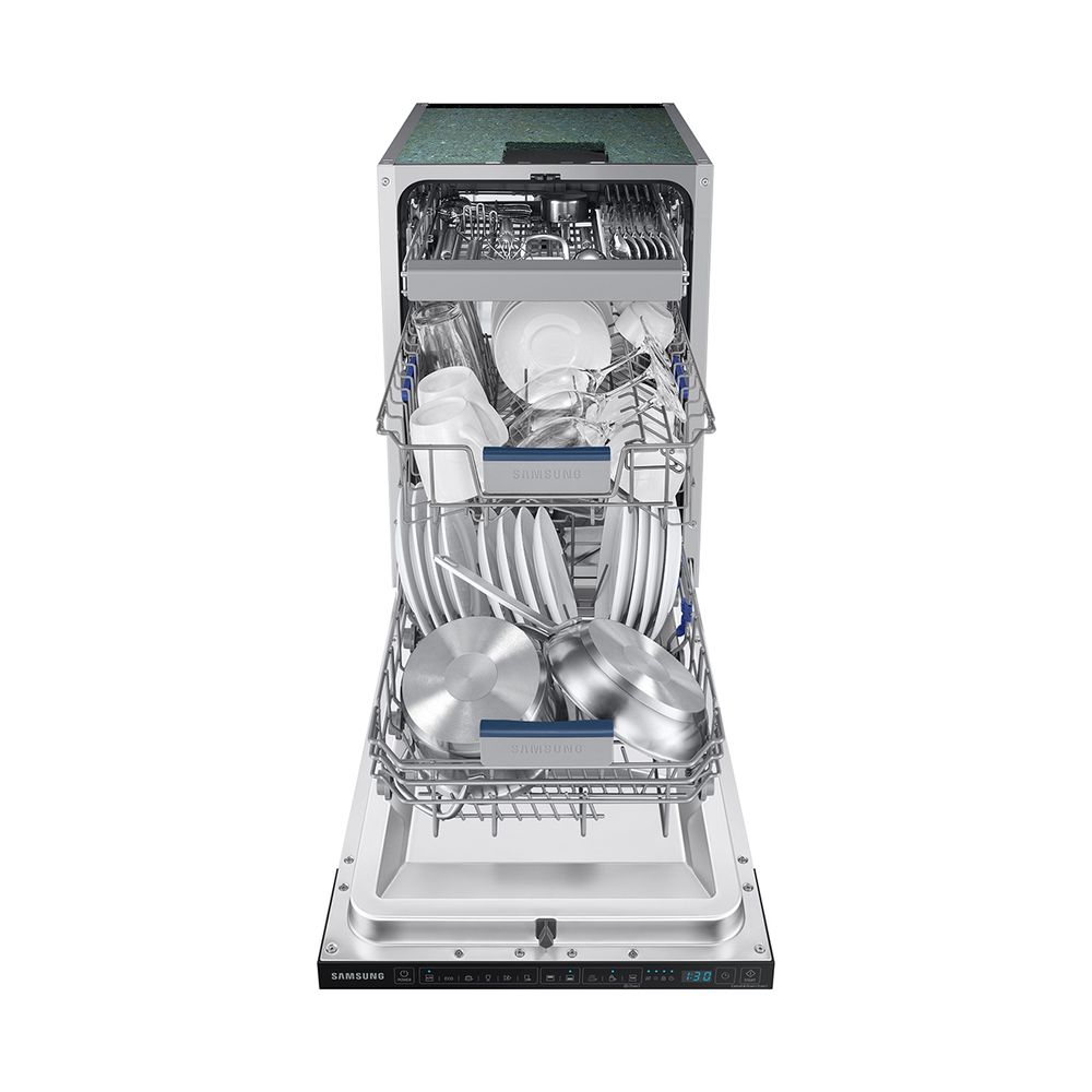 Εντοιχιζόμενο πλυντήριο πιάτων 45cm Samsung χωρητικότητας 10 σερβίτσιων, με αυτόματο άνοιγμα πόρτας και ευέλικτο 3ο ράφι για εύκολο πλύσιμο των μαχαιροπήρουνων σου.