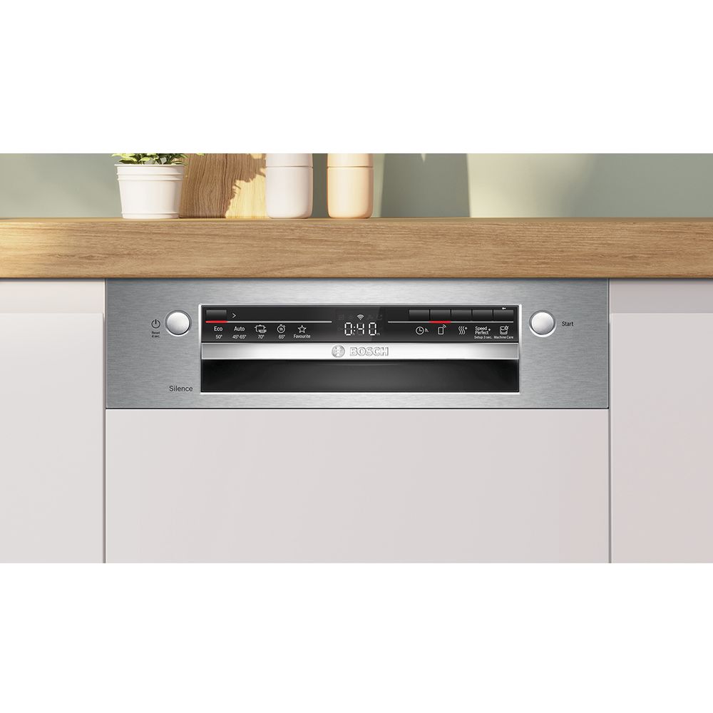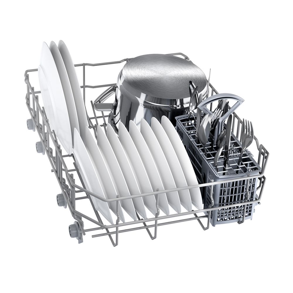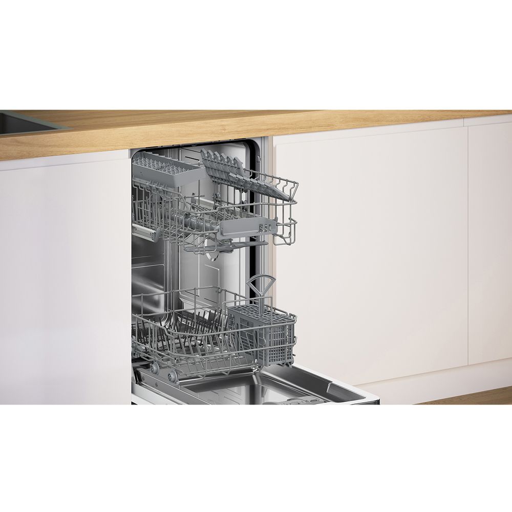 Εντοιχιζόμενο πλυντήριο πιάτων 45cm Bosch χωρητικότητας 10 σερβίτσιων, με 6 προγράμματα, βραχίονα ψεκασμού Duo Power, επιλογήGlassProtect - σύστημα προστασίας γυαλικών και λειτουργία ExtraDry για ενισχυμένο στέγνωμα.