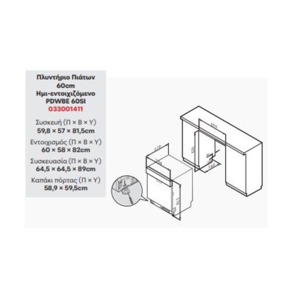 Pyramis PDWBE 60SI 60cm Εντοιχιζόμενο Πλυντήριο Πιάτων