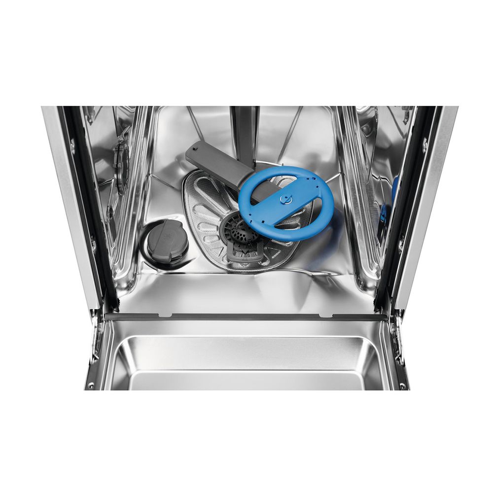 Το εντοιχιζόμενο πλυντήριο πιάτων Electrolux EES47300IX με χωρητικότητα 10 σερβίτσιων και 8 προγράμματα πλύσης προσφέρει απόλυτη ευελιξία. Το συρτάρι MaxiFlex προσαρμόζεται για να χωράει μαχαιροπίρουνα και σκεύη κάθε σχήματος. Η τεχνολογία SatelliteClean εξασφαλίζει τριπλάσια απόδοση καθαρισμού, ενώ οι διπλοί εκτοξευτήρες νερού φτάνουν σε κάθε γωνία. Με το QuickLift, το ύψος του καλαθιού ρυθμίζεται εύκολα, προσφέροντας πρακτικότητα και άνεση.