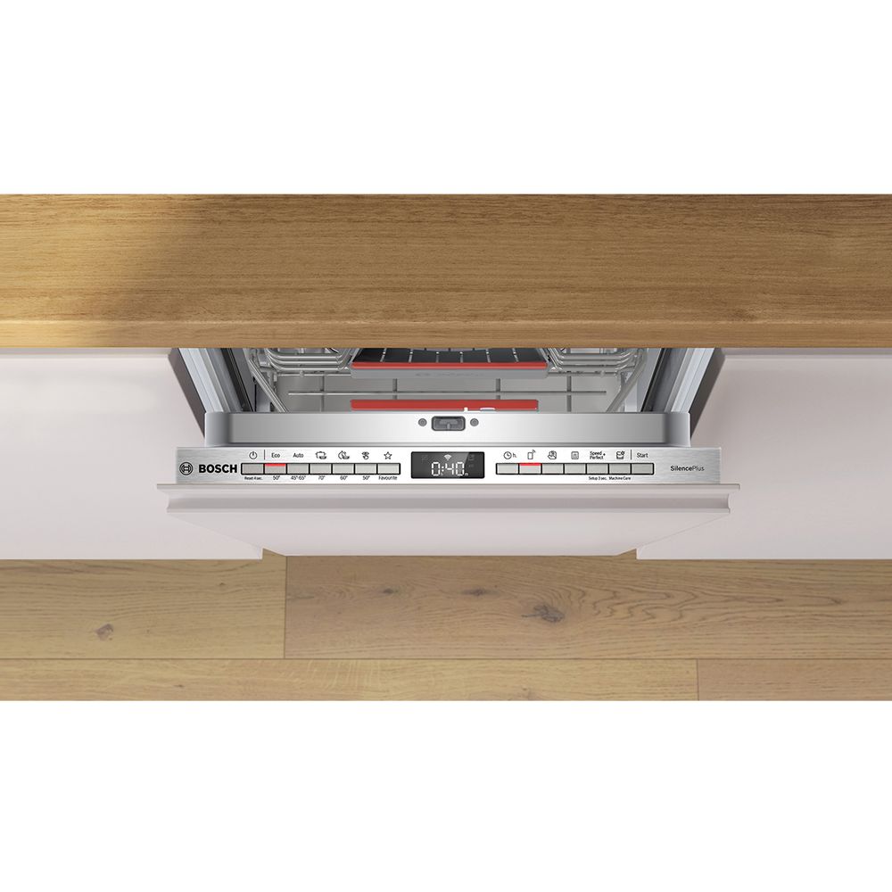 Απόλαυσε καθαρά πιάτα χωρίς κόπο με το εντοιχιζόμενο πλυντήριο πιάτων Bosch SPV4EMX30E! Σειρά 4, 45 cm, με χωρητικότητα 10 σερβίτσια και δυνατότητα ελέγχου από όπου κι αν βρίσκεσαι. Η IntensiveZone καθαρίζει τα πιο δύσκολα σκεύη, τα VarioFlex καλάθια και το VarioDrawer χωρούν τα πάντα, ενώ το SuperSilence και η ActiveWater σου προσφέρουν σιωπή και οικονομία. Το αυτόματο πρόγραμμα εξασφαλίζει τέλειο αποτέλεσμα κάθε φορά.