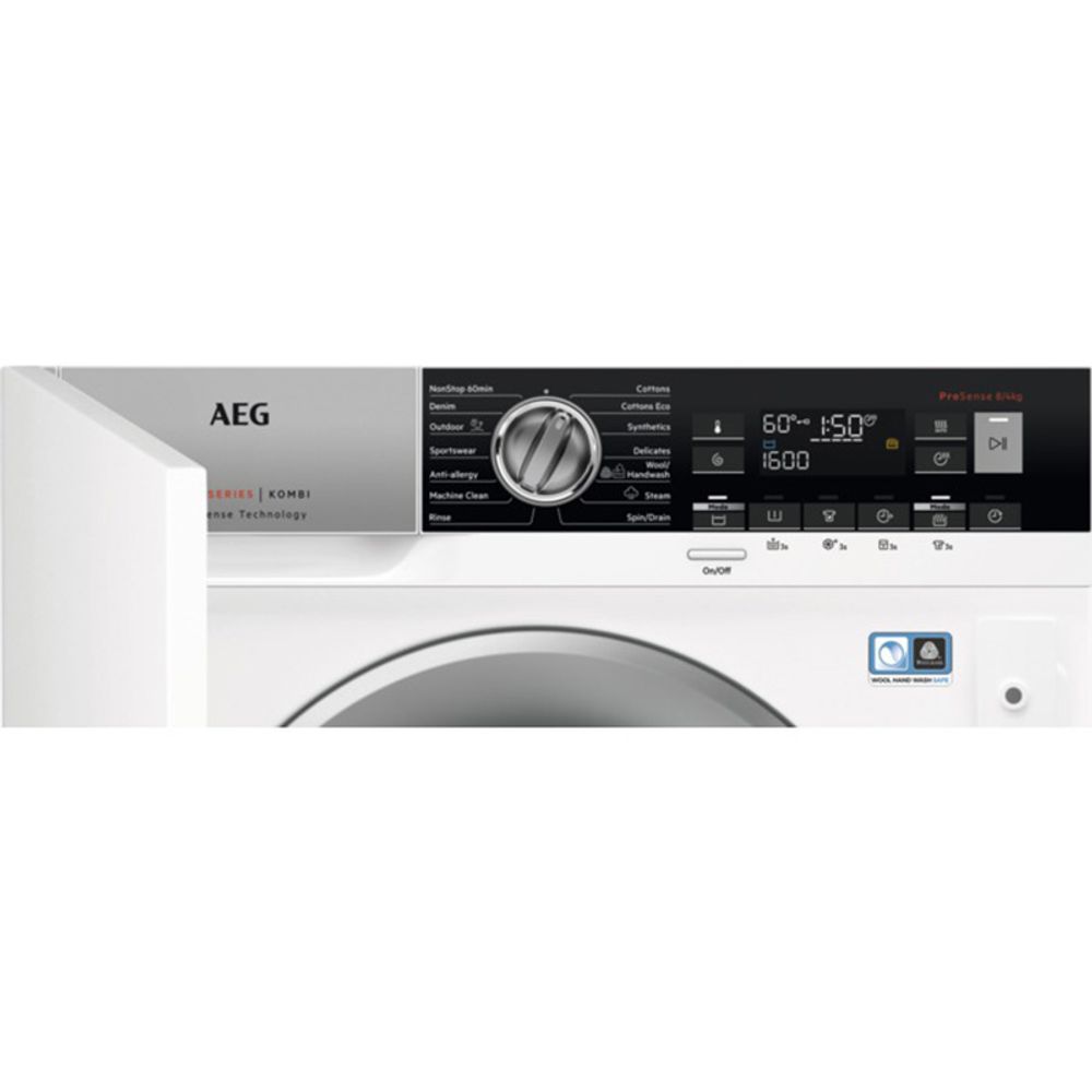 Εντοιχιζόμενο πλυντήριο-στεγνωτήριο AEG L8WBE68SI με χωρητικότητα πλύσης 8 κιλών, στεγνώματος 4 κιλών, με πρόγραμμα ατμού και τεχνολογία DualSense που προσαρμόζει αυτόματα τις ρυθμίσεις του κύκλου σύμφωνα με τα είδη υφάσματος στο φορτίο.