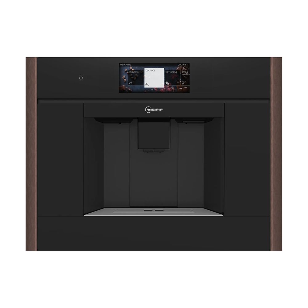 Εντοιχιζόμενη καφετιέρα Neff με πίεση 19 bar και λειτουργία Aroma Select για να επιλέγεις την ένταση του καφέ που επιθυμείς. Επιπλέον, διαθέτει premium TFT οθόνη 6.8'' με πλήκτρα αφής, Flex Control για να μπορείς να την χειριστείς με το μαγνητικό διακόπτη Twist Pad Flex και δυνατότητα σύνδεσης στην εφαρμογή Home Connect. Επιπλέον, περιλαμβάνει 2 πλαϊνές λωρίδες για τοποθέτηση στη συσκευή σου.