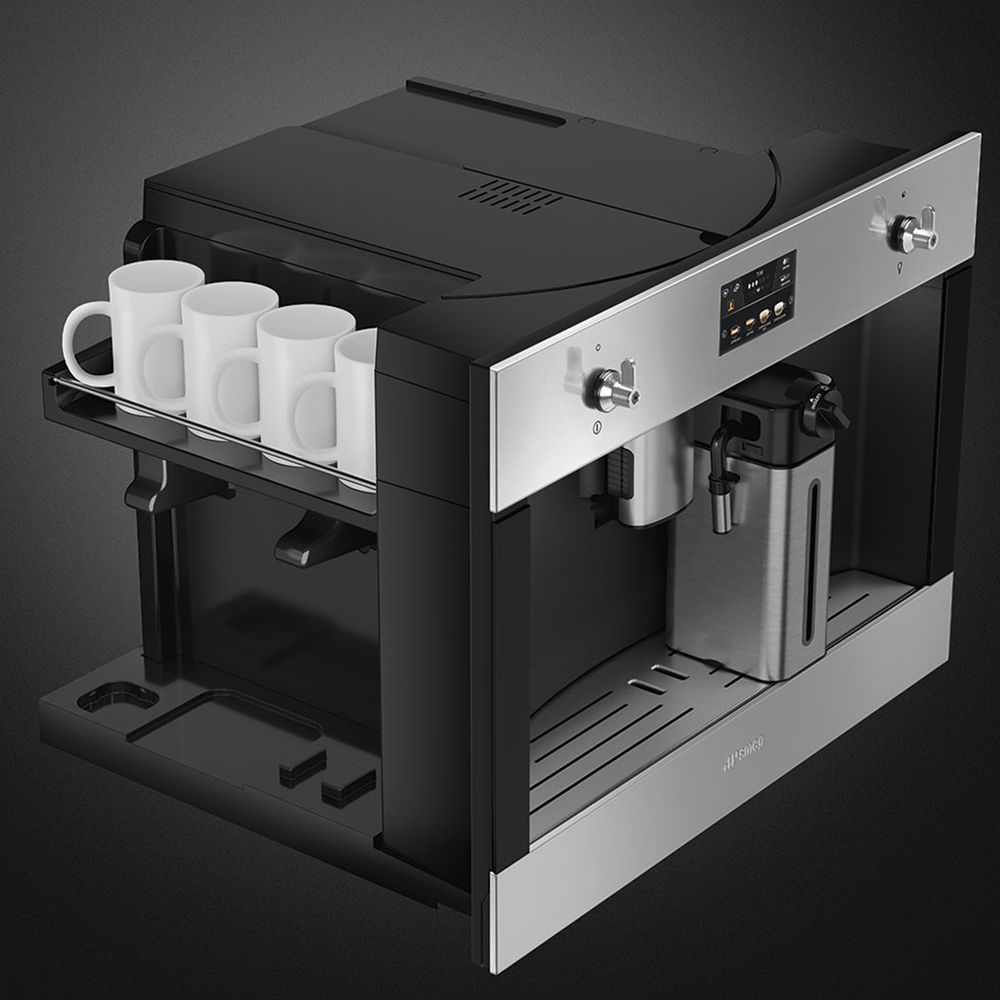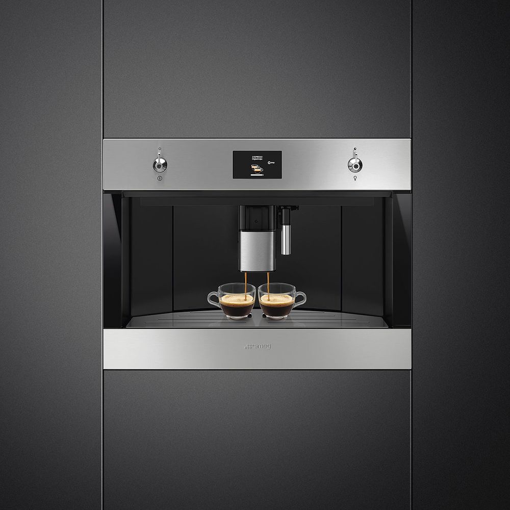 Η εντοιχιζόμενη καφετιέρα Smeg CMS4303X είναι εξοπλισμένη με τα καλύτερα τεχνολογικά πλεονεκτήματα με 50 προγράμματα και δυνατότητα επιλογής ανάμεσα σε 13 ζεστά ροφήματα. Ο σχεδιασμός της από ανοξείδωτο χάλυβα την καθιστά ένα καθαρό και εύκολο στη χρήση προϊόν.