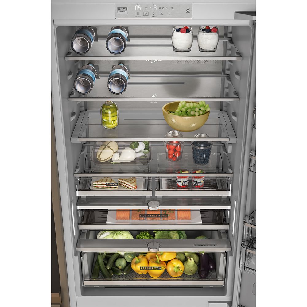 Εντοιχιζόμενος ψυγειοκαταψύκτης Whirlpool, με διαθέτει τεχνολογία Total No Frost, που εμποδίζει αποτελεσματικά τη συσσώρευση πάγου στον καταψύκτη, μέσω της μείωσης του επιπέδου υγρασίας, Fresh Box + για να διατηρείς τα φρούτα και λαχανικά σου φρέσκα για ακόμα περισσότερο και συναγερμό θερμοκρασίας που βοηθά την αποφυγή αλλοίωσης τροφίμων σε περίπτωση ανόδου της εσωτερικής θερμοκρασίας.