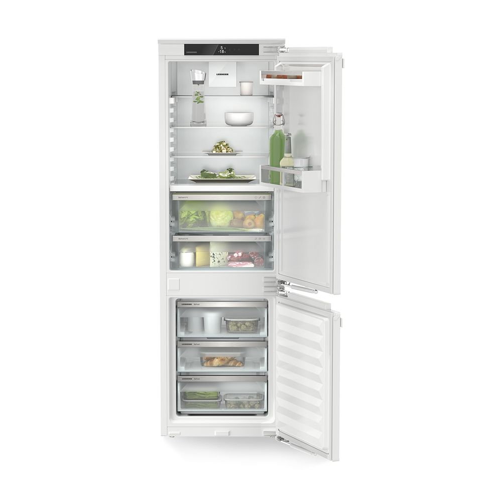 O πλήρως εντοιχιζόμενος ψυγειοκαταψύκτης της Liebherr με DuoCooling, φροντίζει ώστε να μην πραγματοποιείται ανταλλαγή αέρα μεταξύ ψυγείου και κατάψυξης. Τα τρόφιμα δεν ξηραίνονται και δεν μεταφέρονται οσμές μεταξύ των θαλάμων. Επίσης, διαθέτει τεχνολογία SoftSystem, Φρουτολεκάνη Fruit and Vegetable, Συρτάρι Meat and Dairy και οθόνη αφής.
