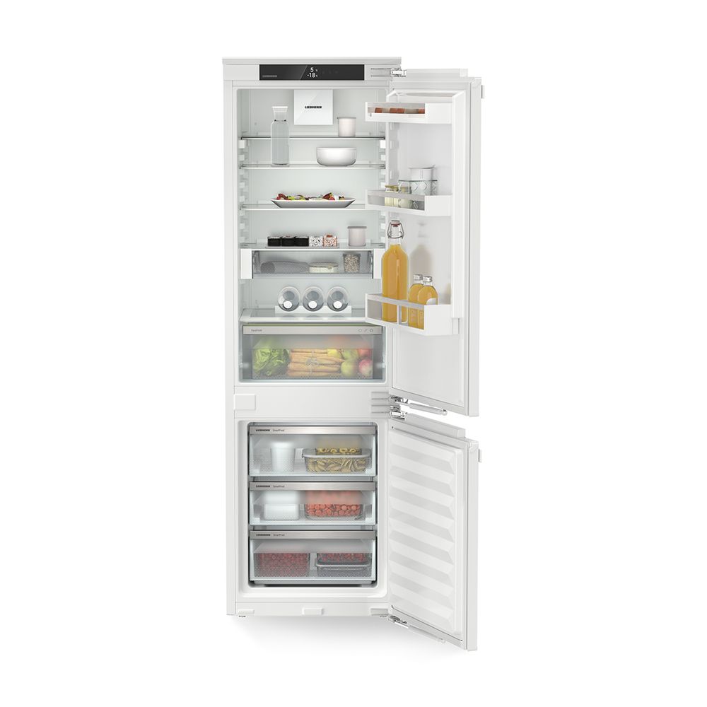 O πλήρως εντοιχιζόμενος ψυγειοκαταψύκτης της Liebherr με DuoCooling, φροντίζει ώστε να μην πραγματοποιείται ανταλλαγή αέρα μεταξύ ψυγείου και κατάψυξης. Τα τρόφιμα δεν ξηραίνονται και δεν μεταφέρονται οσμές μεταξύ των θαλάμων. Επίσης, διαθέτει τεχνολογία SmartFrost, συρτάρι EasyFresh, VarioSpace και οθόνη αφής.