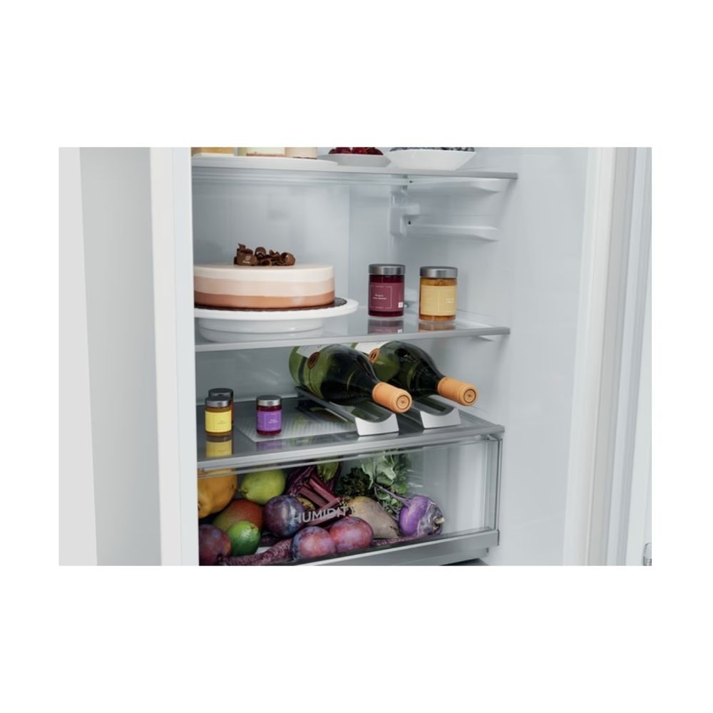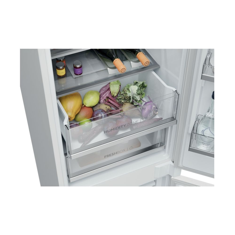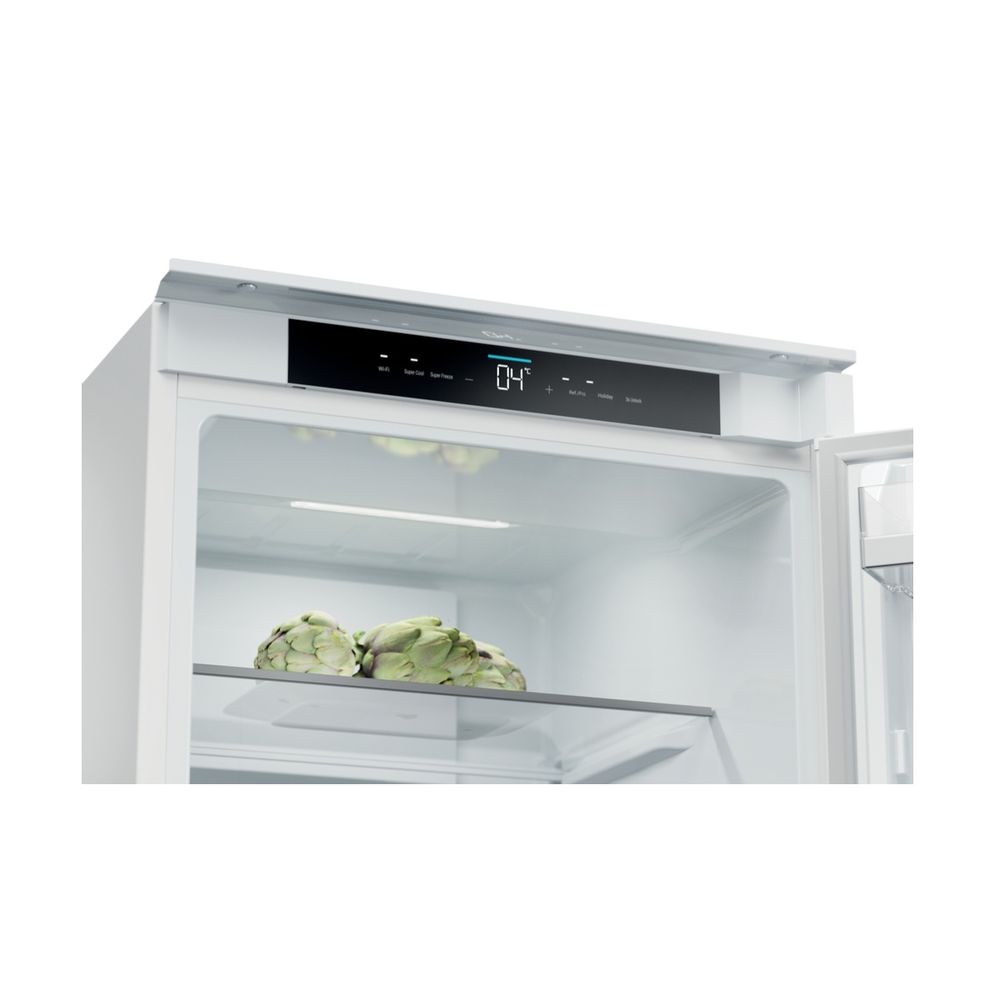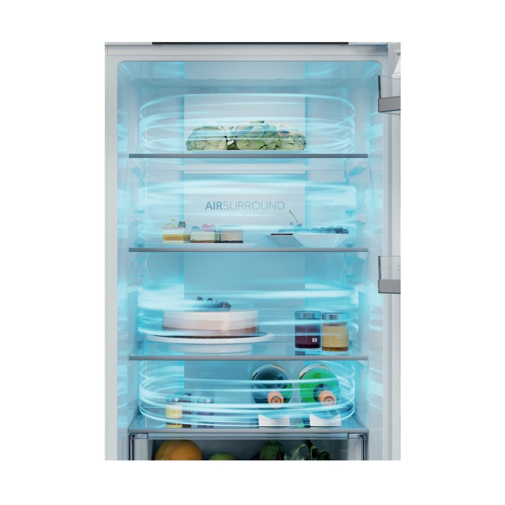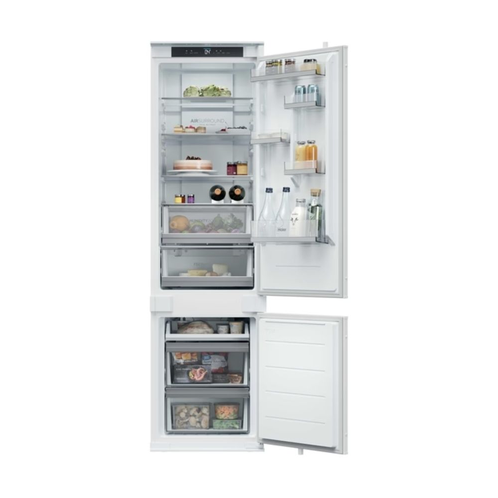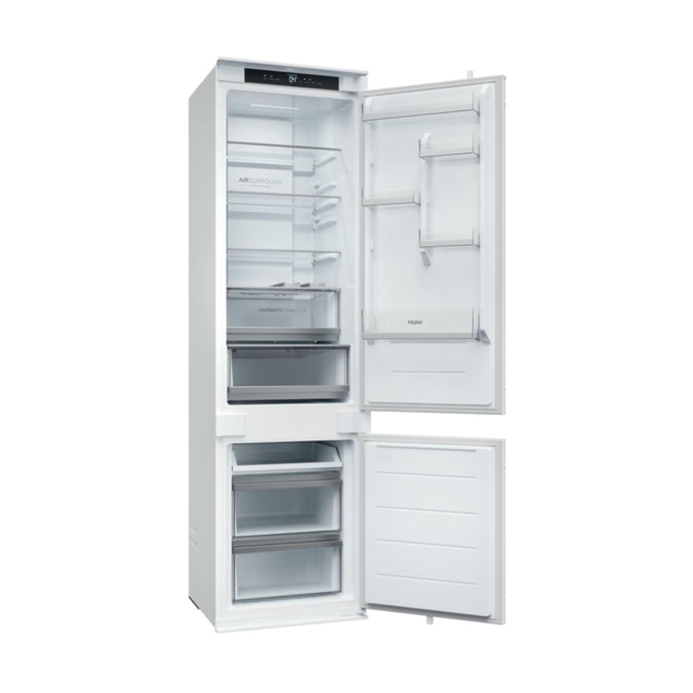 Διαθέτει Συρτάρι Humidity Zone με τεχνολογία HCS για φρούτα και λαχανικά φρέσκα έως και 2 φορές περισσότερο, Haier Air Surround Fresher Tech για ομοιόμορφη κατανομή ψυχρού αέρα και Total No Frost. Προσφέρει 15% μεγαλύτερη χωρητικότητα από ένα τυπικό εντοιχιζόμενο ψυγείο, ενεργειακή κλάση E και πλήρη έλεγχο μέσω εφαρμογής hOn.
