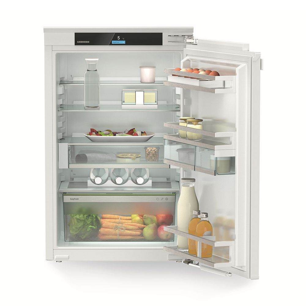 Πλήρως εντοιχιζόμενο ψυγείο Easyfresh. Στο συρτάρι Easyfresh μπορείς να αποθηκεύσεις φρούτα και λαχανικά στην ιδανική υγρασία, ώστε να διατηρηθεί η γεύση και η δομή. Η θερμοκρασία μπορεί να ρυθμιστεί μέσω της οθόνης με χειριστήρια αφής και, εκτός από την τρέχουσα θερμοκρασία, εμφανίζει και μηνύματα συναγερμού, για παράδειγμα σε περίπτωση διακοπής ρεύματος.