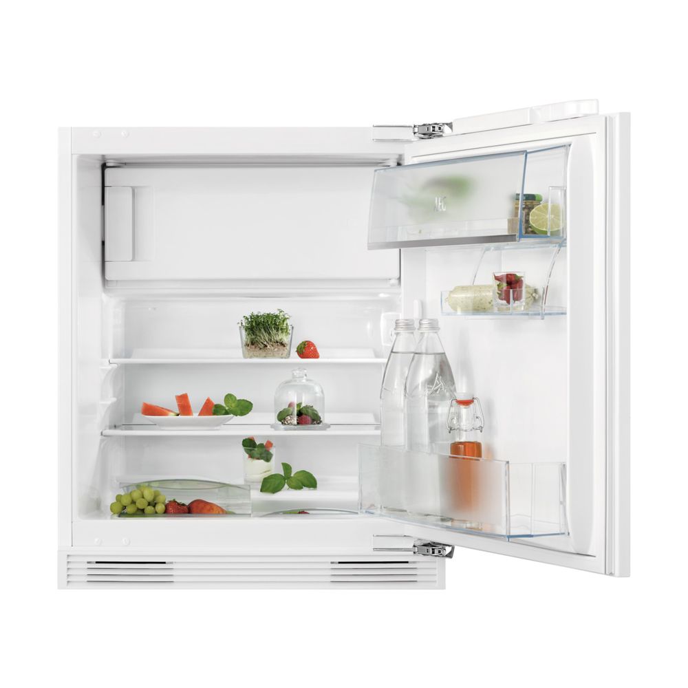 Εντοιχιζόμενο ψυγείο AEG με χωρητικότητα 110 lt, OptiSpace για άφθονο χώρο ανάμεσα στα ράφια, εσωτερικό ηλεκτρονικό χειριστήριο για ψύξη ακριβείας και χαμηλό συρτάρι λαχανικών.