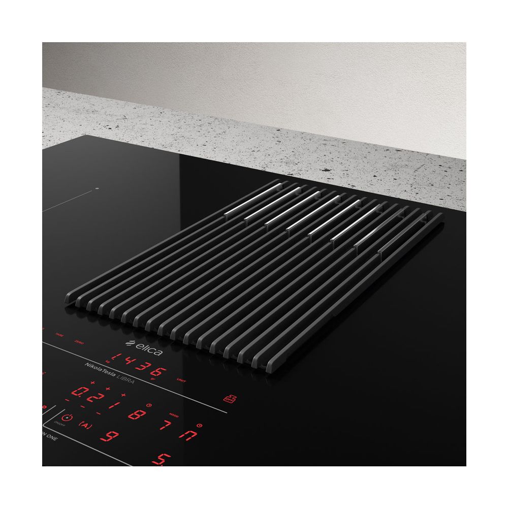 NikolaTesla επαγωγική εστία με απορρόφηση της Elica και ενσωματωμένη ζυγαριά, εξοπλισμένη με τις πιο εξελιγμένες τεχνολογίες. Διαθέτει μοντέρνο σχεδιασμό, με δυνατές γραμμές και υλικά υψηλής ποιότητας. Συνδυάζει τις λειτουργίες δύο συσκευών σε ένα μόνο προϊόν και προσφέρει όλα τα πλεονεκτήματα των επαγωγικών εστιών, συμπεριλαμβανομένου του εύκολου καθαρισμού. Ακόμα, χάρη στη λειτουργία διπλής γέφυρας, επιτρέπει τη συνδυασμένη χρήση δύο γειτονικών ζωνών μαγειρέματος, ώστε να μπορούν να χρησιμοποιηθούν σκεύη μεγάλου μεγέθους.