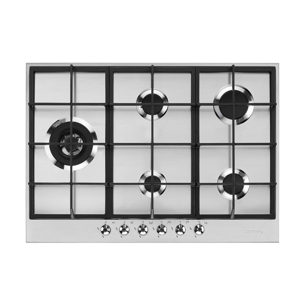 Η εστία Smeg αερίου πλάτους 75 cm συνδυάζει ποιοτικά υλικά με τεχνολογία αιχμής με 5 ζώνες μαγειρέματος. Διατίθεται σε διάφορα σχήματα, μεγέθη και μεθόδους μαγειρέματος για να ταιριάζουν με την αισθητική του φούρνου σου.