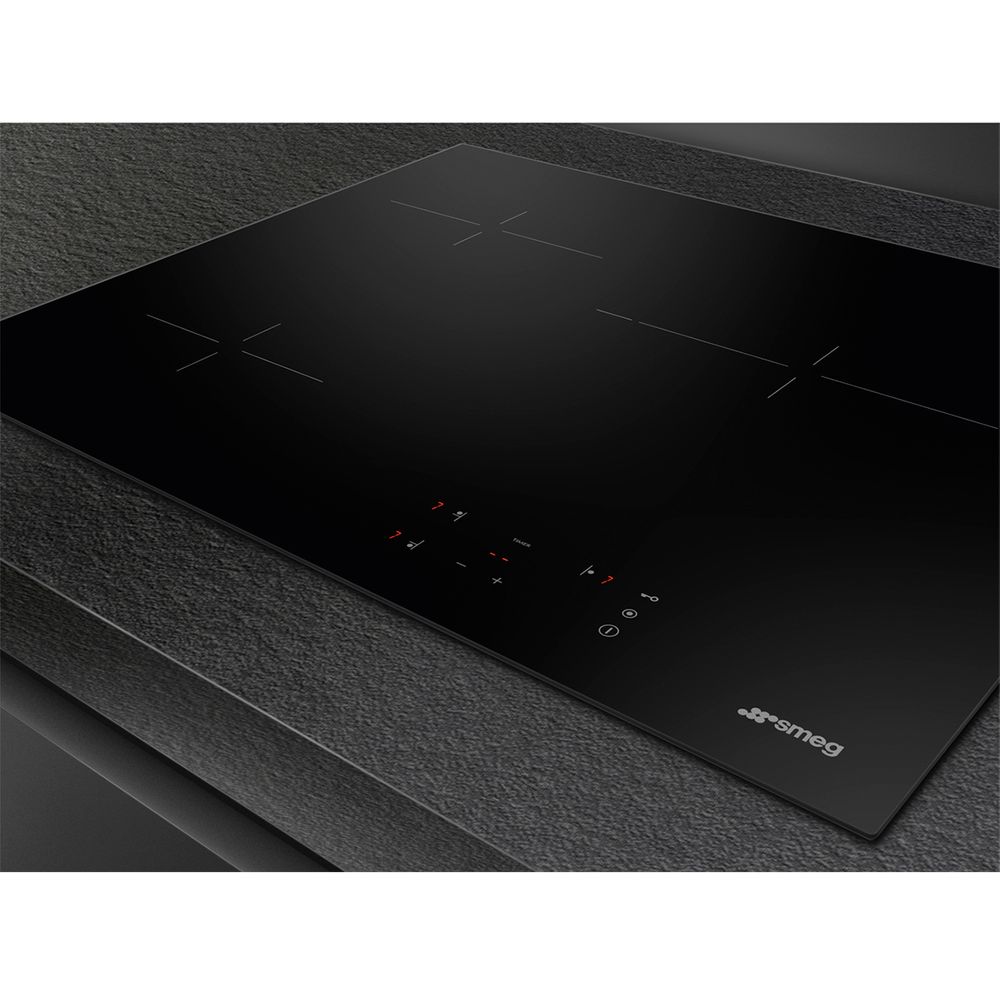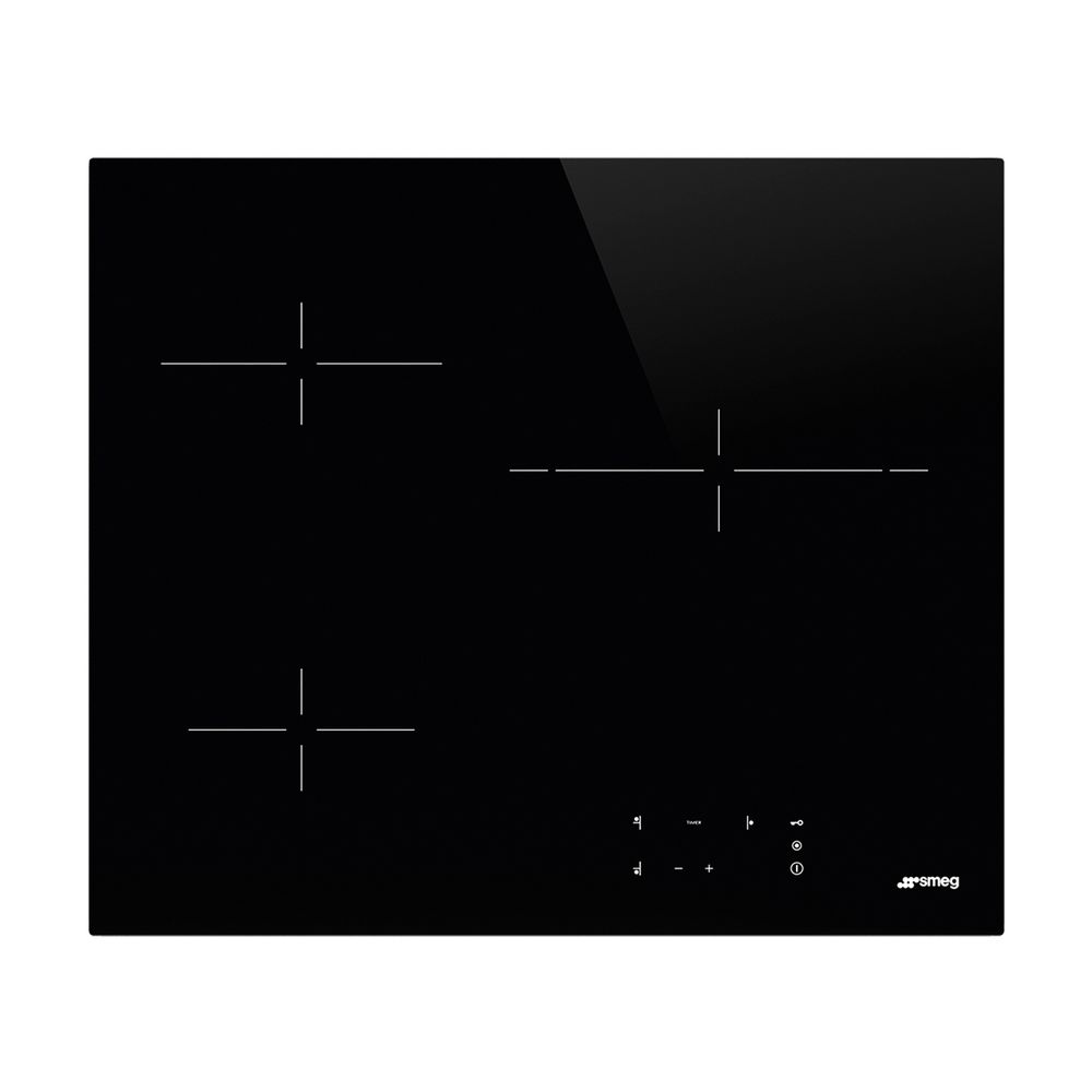 Κεραμικές εστίες SMEG SE263TD1, μαύρου χρώματος, με 3 ζώνες και 9 βαθμίδες ισχύος, χειρισμό αφής, ασφάλεια κλειδώματος και αυτόματη απενεργοποιήση σε περίπτωση υπερθέρμανσης.