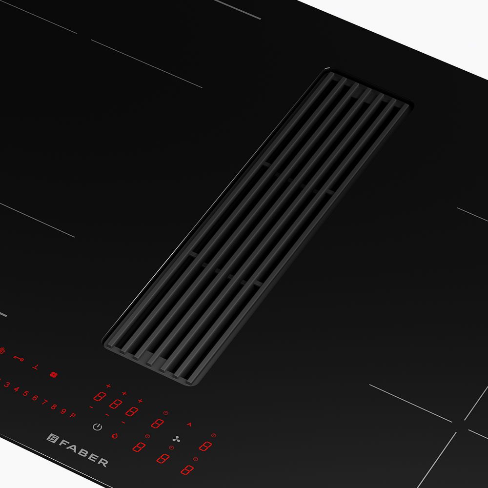 Η επαγωγική εστία με απορροφητήρα Galileo Linear F830 της Faber αποτελεί την επιτομή του συνδυασμού κομψότητας και λειτουργικότητας. Με διαχρονικά κομψό κάθετο πλέγμα από ανοξείδωτο χάλυβα, εξασφαλίζει αισθητική αρμονία σε κάθε κουζίνα. Η ενεργειακή απόδοση Α+ και η απορροφητική ισχύς 600m³/h εγγυώνται κορυφαία απόδοση. Διαθέτει 4 εστίες και λειτουργία Recycling Version με προεγκατεστημένο φίλτρο ενεργού άνθρακα για ανακύκλωση του αέρα, καθώς και διακόπτες αφής για εύκολο χειρισμό.