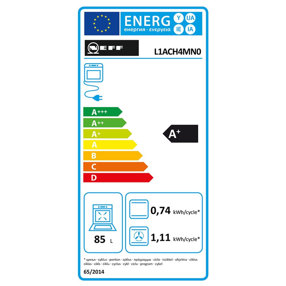 Φούρνος εντοιχιζόμενος Neff L1ACH4MN0 χωρητικότητας 85 λίτρων, ενεργειακής κλάσης Α+ με 10 τρόπους λειτουργίας και με σύστημα EasyClean για απλό, ενεργειακά-οικονομικό καθαρισμό του εσωτερικού του φούρνου.